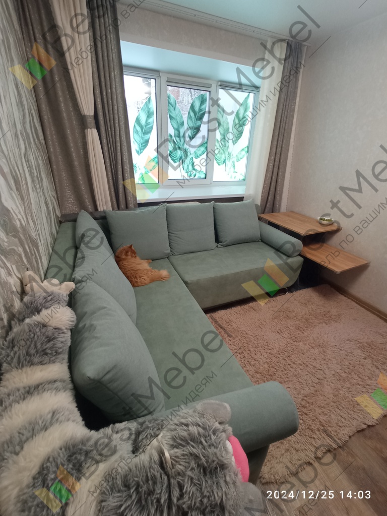 Отличный вариант для не большой гостиной. Спальное место 1300*1900 получили увеличив ширину, для гостевого варианта - идеально. Основной цвет велюр Bruno 03, подушки велюр Alfa 20. Отдельно порадовало качество, крепкий добротный диван. Собирали сами, проблем не возникло.