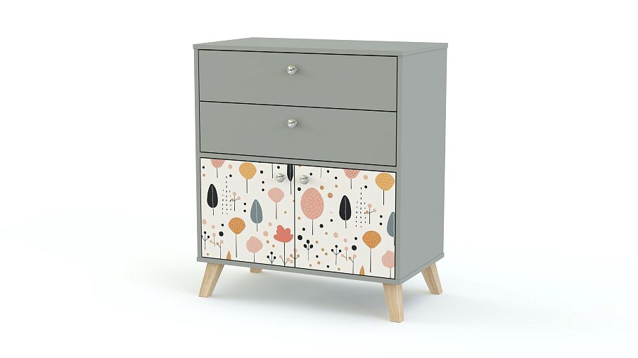 Комод Эльза 2 BMS — компактный и функциональный, создан для современной детской. Модель с высокими ножками, удобными округлыми ручками и нежным принтом хорошо дополняет мебель разной стилистики. Два выдвижных ящика и отделение с дверцами подойдут для хранения одежды ребенка, постельного белья и игрушек, а на столешницу можно положить книжку или поставить ночник. Купить комод Эльза 2 BMS приглашаем в наш интернет-магазин, подобрав фурнитуру и цвет по каталогу.