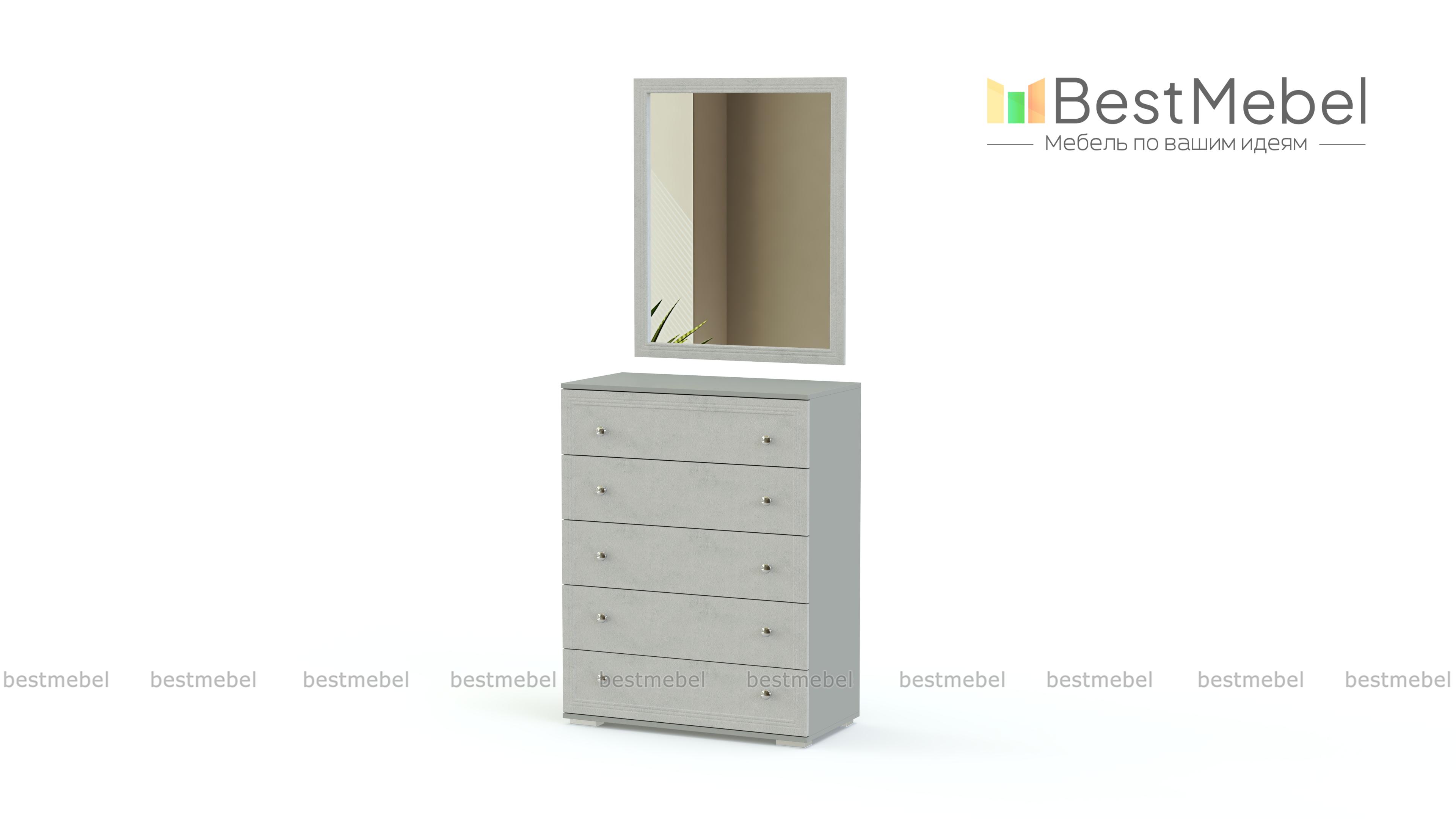Комод Карина 2 BMS подходит для меблировки небольших помещений благодаря компактным размерам. Модель оборудована пятью выдвижными ящиками для хранения домашнего текстиля и разнообразных бытовых мелочей, а дополнение в виде навесного зеркала позволяет использовать его как туалетный столик. Выполненный из материалов в светлых белых тонах, комод декорирован неброской рамочной фрезеровкой и оснащен ручками-кнопками. Купить комод Карина 2 BMS приглашаем в наш интернет-магазин с выбором цвета и фурнитуры.