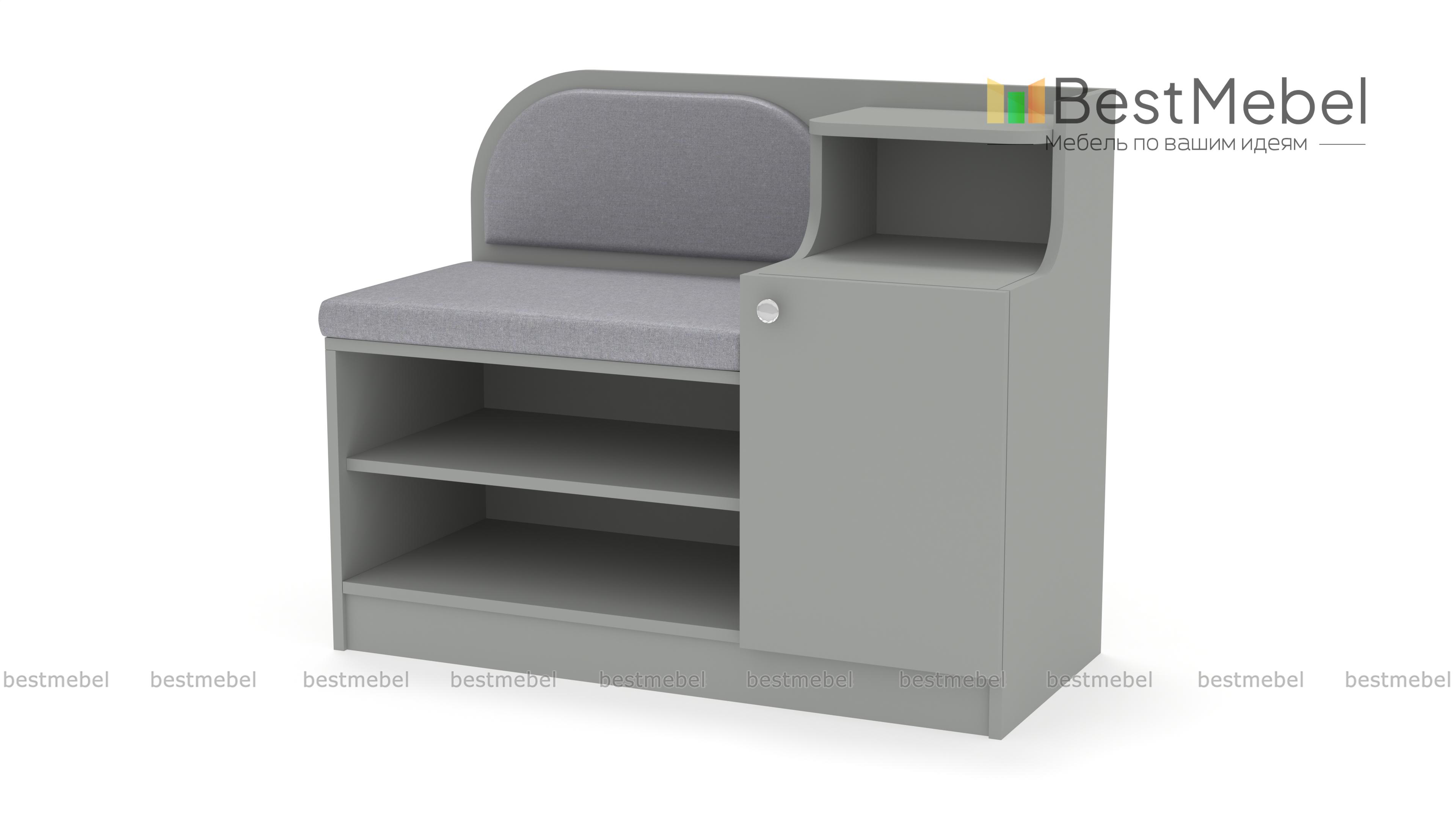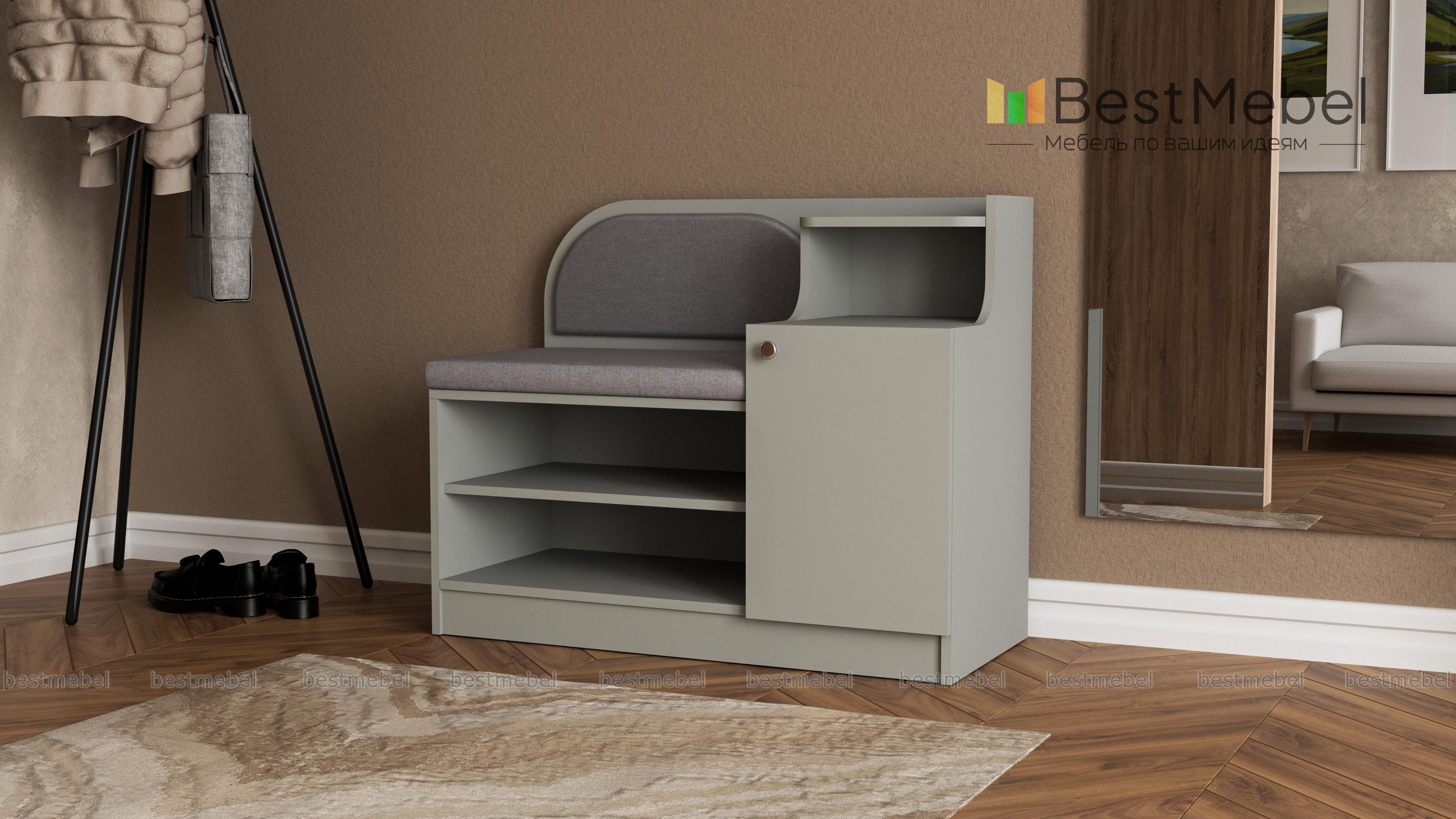 Обувница Меренга BMS поможет вам не только бережно разместить обувь, уходовые средства и бытовые мелочи, но и с комфортом обуться. Многофункциональная модель оборудована открытыми обувными полками, распашным отделением, нишей и сиденьем с высокой скругленной спинкой. Обувница выполнена в практичных темных тонах, на сиденье располагаются мягкие накладки в износостойкой ткани. Купить обувницу Меренга BMS и дополнить интерьер входной зоны практичным предметом вам поможет наш интернет-магазин.
