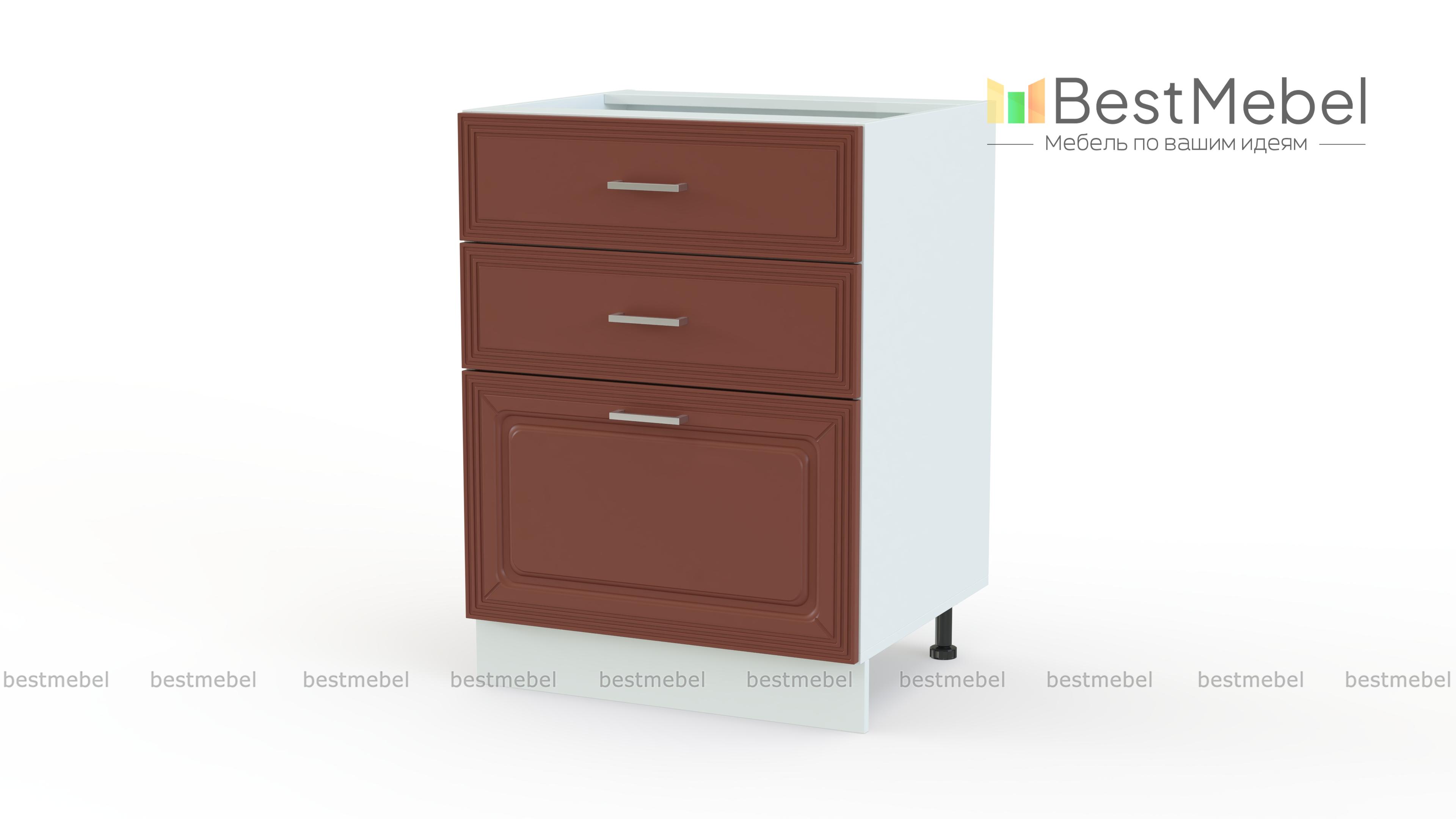 Шкаф нижний с 3-мя ящиками Ника BMS поможет компактно разместить как мелочи, так и более габаритные кухонные принадлежности. Модель оборудована тремя выдвижными ящиками разной высоты и сделает хранение максимально удобным, так что вам не придется тратить время на поиски нужной вещи. Классические фасады выполнены в светлых тонах и украшены фрезеровкой и ручками-скобами под серебро. Купить шкаф нижний с 3-мя ящиками Ника BMS и дополнить гарнитур практичным предметом вы сможете с помощью нашего интернет-магазина.