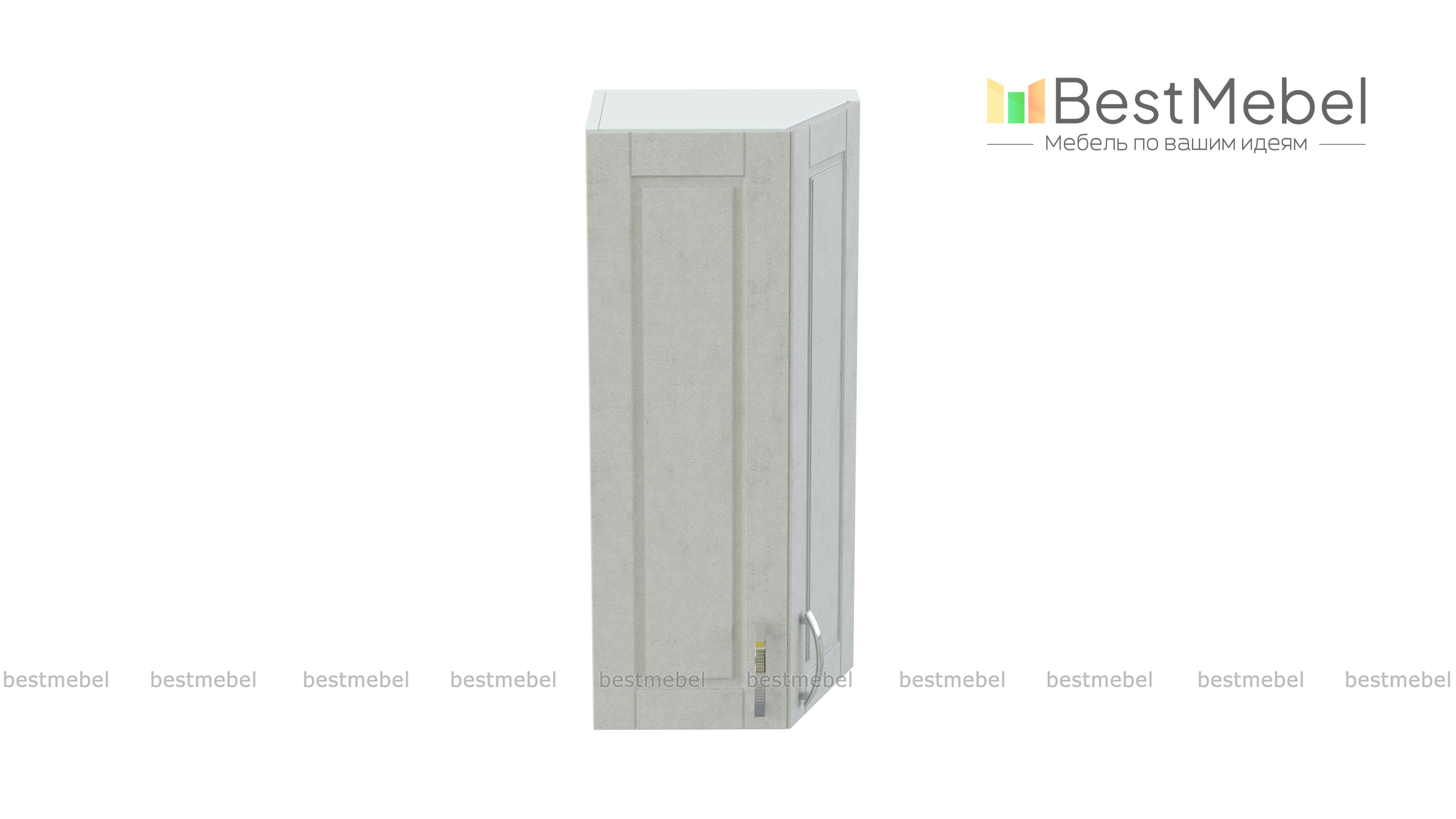 Шкаф верхний Лондон торцевой BMS предназначен для завершения ряда навесных модулей в кухонном гарнитуре. Компактный шкафчик со скошенным фасадом сглаживает острые углы, делая пользование безопасным, и визуально облегчает композицию. Выполненная в едином стиле с другими шкафами серии, модель декорирована вертикальной фрезеровкой и изящными ручками. Внутреннее распашное отделение удобно разместит множество бытовых мелочей. Купить шкаф верхний Лондон торцевой BMS приглашаем недорого в наш интернет-магазин.