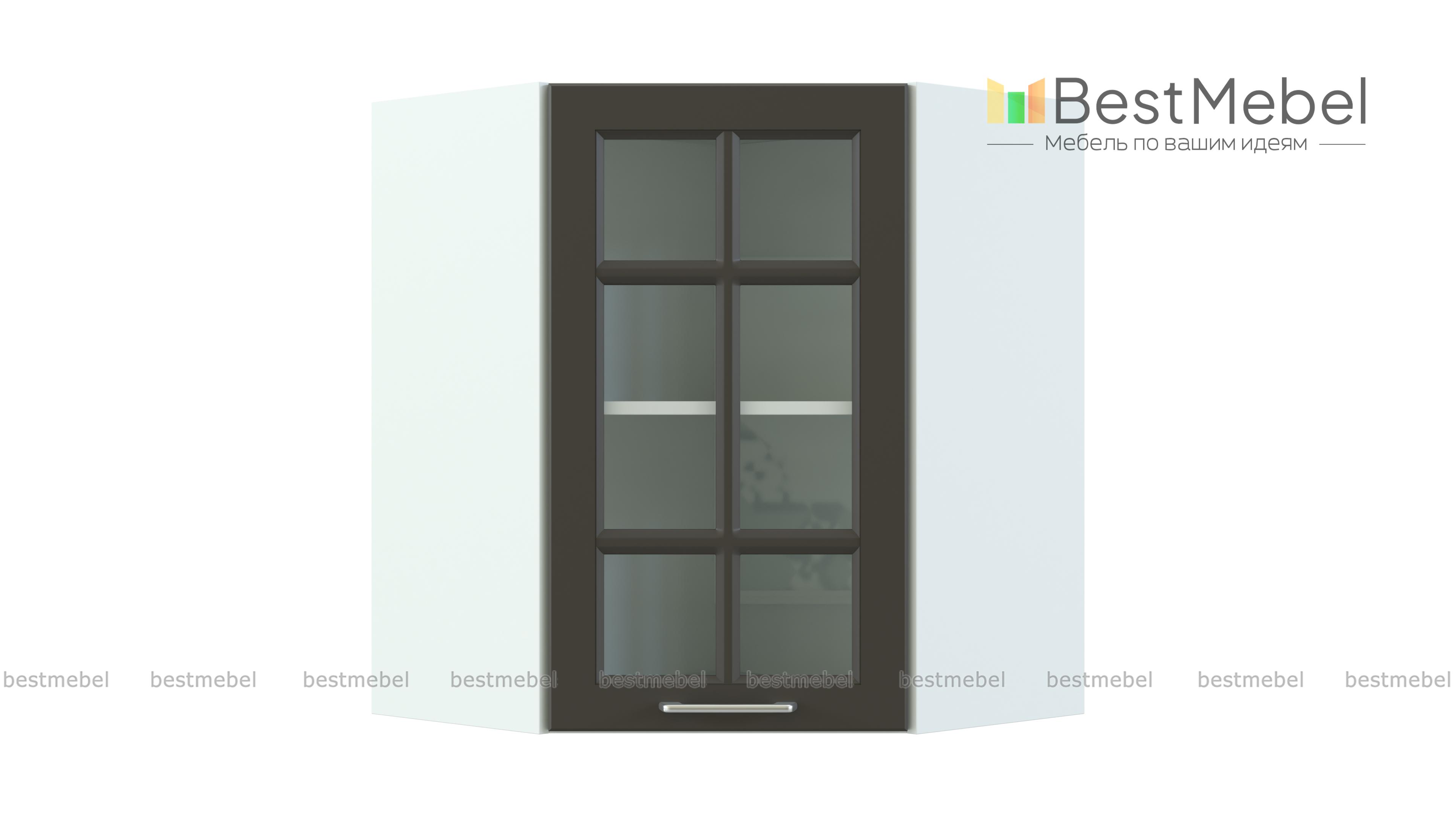 Шкаф верхний угловой остекленный Европа BMS станет незаменимым элементом углового модульного комплекта и позволит выгодно разместить посуду, предметы декора и хрупкие вещи. Классический шкаф оборудован распашной дверцей с матовым стеклом и элегантной решеткой, внутреннее отделение оборудовано просторной полкой. Практичная конструкция по максимуму использует доступное пространство кухни и экономит полезную площадь. Купить шкаф верхний угловой остекленный Европа BMS для уютного домашнего интерьера приглашаем в наш интернет-магазин.