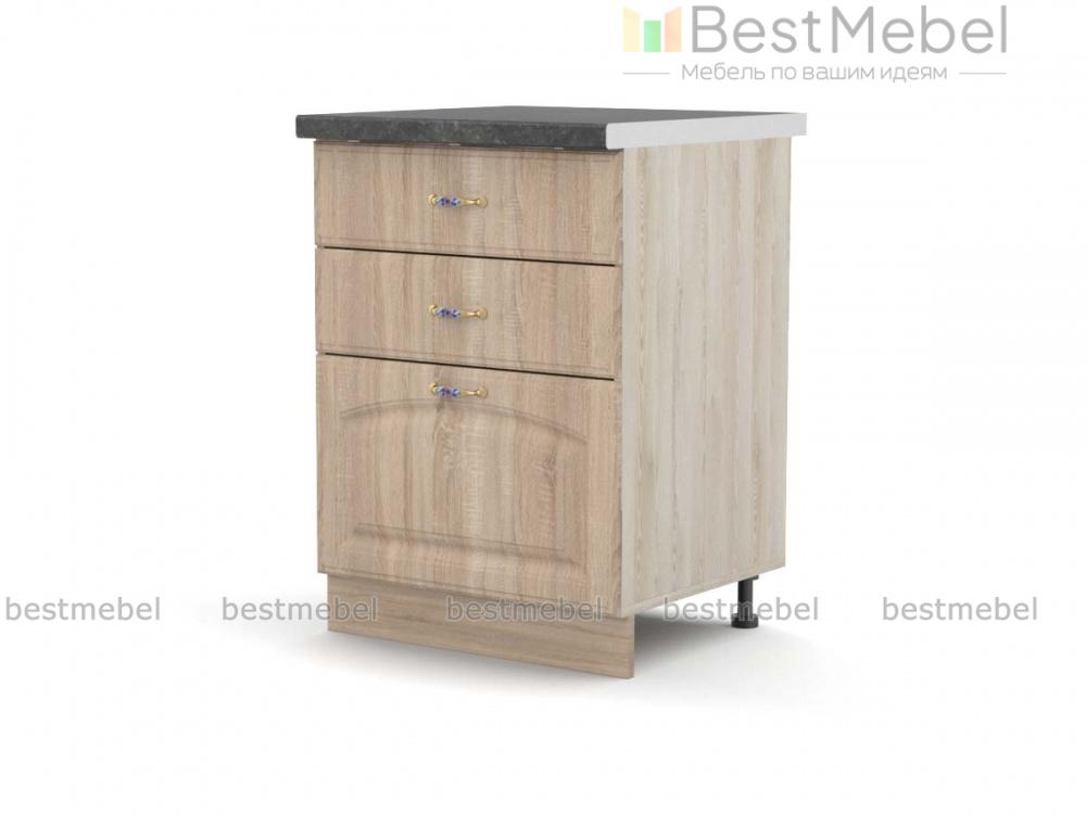 Стол с 3 ящиками Трапеза BMS дополнит модульный гарнитур в классическом стиле удобной системой хранения. Напольная тумба оборудована тремя выдвижными ящиками разной высоты и позволит разместить как столовые приборы и прочие мелкие вещи, так и более габаритные предметы. Элегантные фасады в классическом стиле декорированы фрезеровкой и ручками под серебро, регулируемые опоры закрыты цоколем в тон фасадам. Купить стол с 3 ящиками Трапеза BMS вы сможете по отличной цене в нашем интернет-магазине.