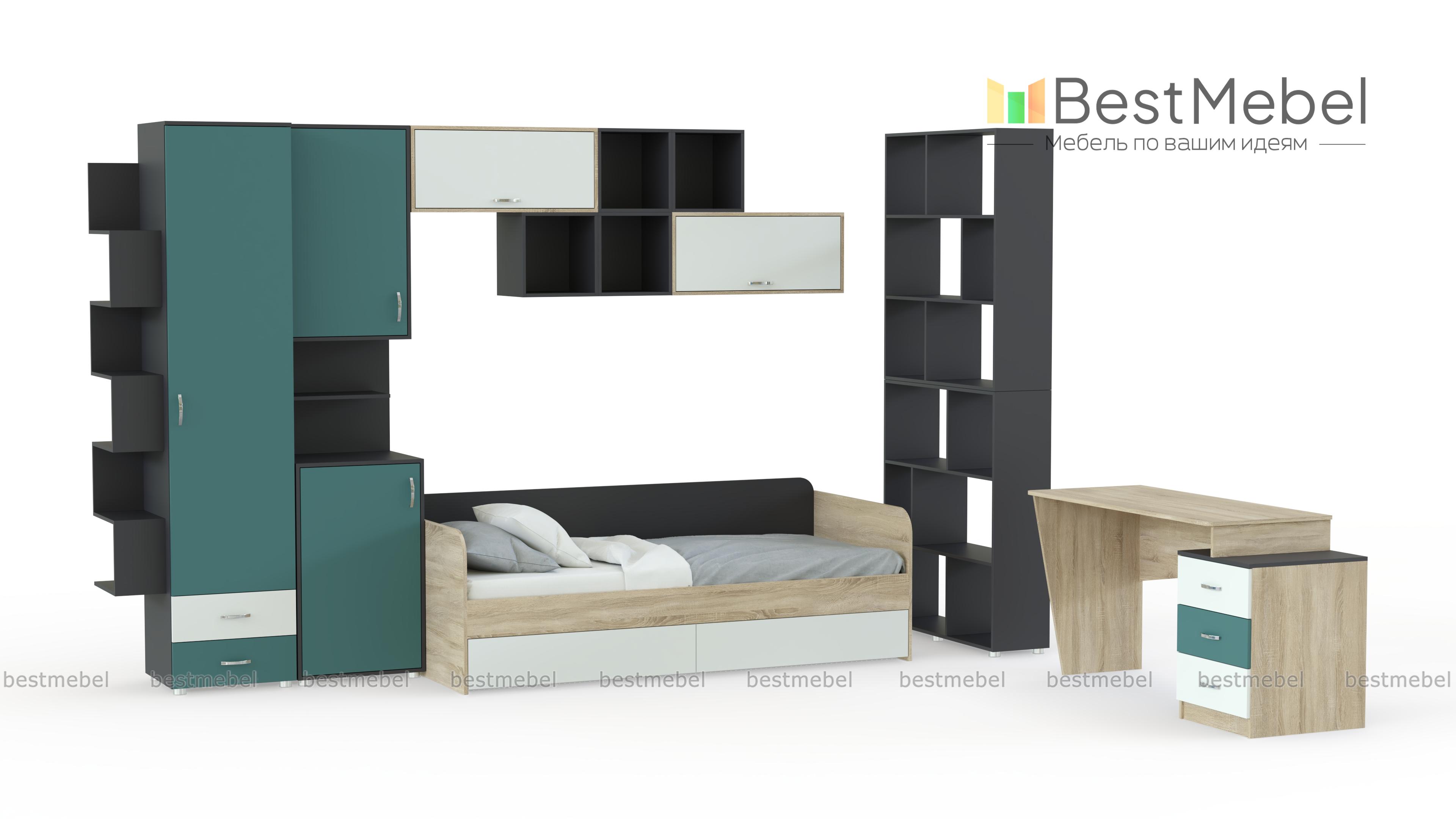 Детская Дарина В-48 BMS отлично подходит для меблировки комнаты девочек, сочетая геометричный дизайн и интересное цветовое решение в контрастной гамме с древесным корпусом. В комплект входят кровать-софа с бельевыми ящиками в основании, письменный стол с тумбой, комбинированные шкафы для книг и одежды и оригинальные открытые полки, которые могут быть как навесными, так и напольными. Купить детскую Дарина В-48 BMS и создать комфортный и запоминающийся интерьер вам поможет наш интернет-магазин.