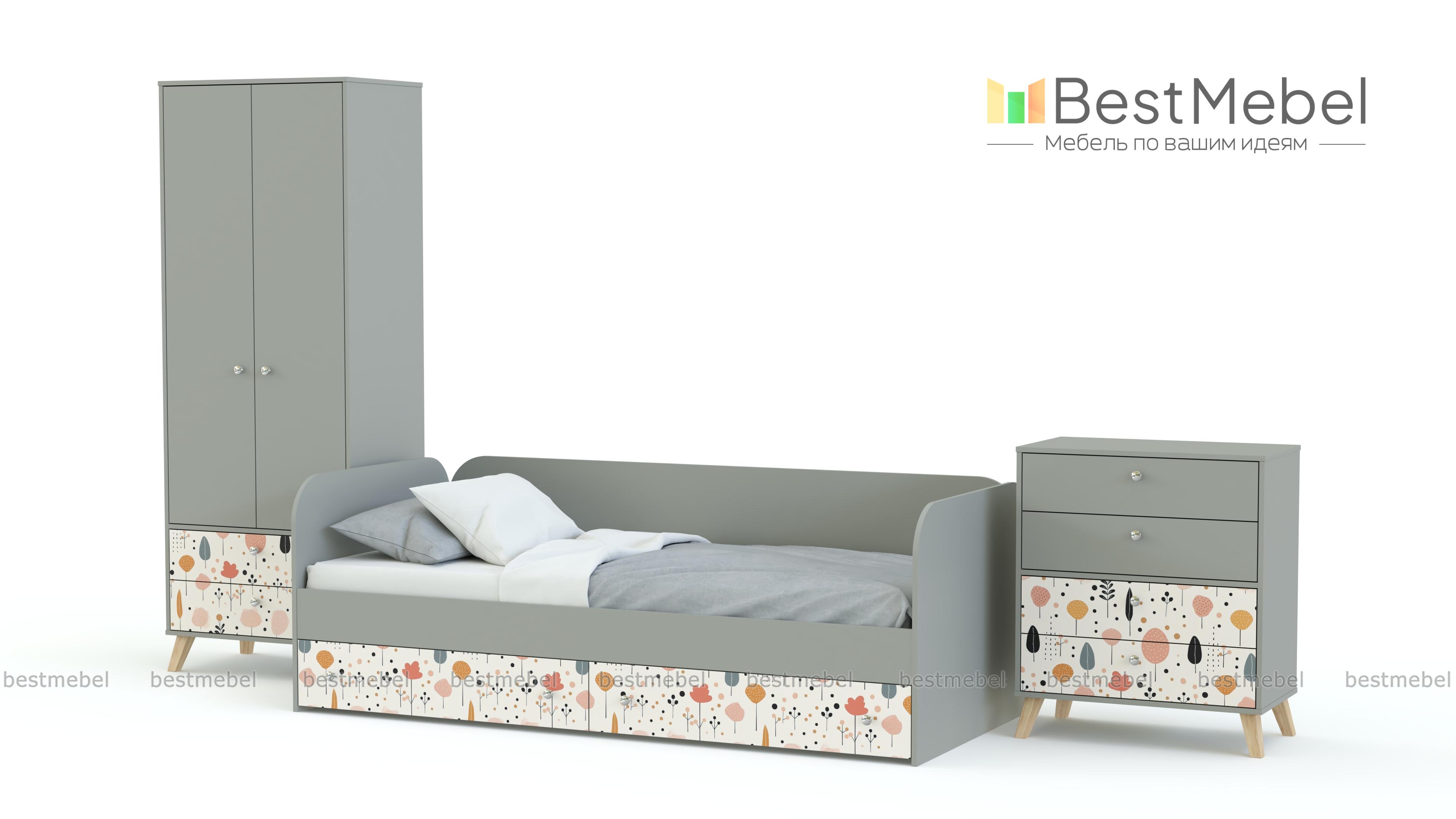 Детская комната Эльза 1 BMS — стильная, функциональная и компактная, что особенно важно для небольших помещений. Кровать-софа прекрасно подходит для сна и дневного отдыха, а для хранения гардероба, белья и игрушек в композицию входят двухстворчатый шкаф с выдвижными ящиками и комод. Нейтральные базовые цвета делают комнату светлее и просторнее, красок добавляет симпатичный фасадный принт. Купить детскую комнату Эльза 1 BMS вы сможете в нашем интернет-магазине, подобрав подходящие именно вам цвета и размеры.