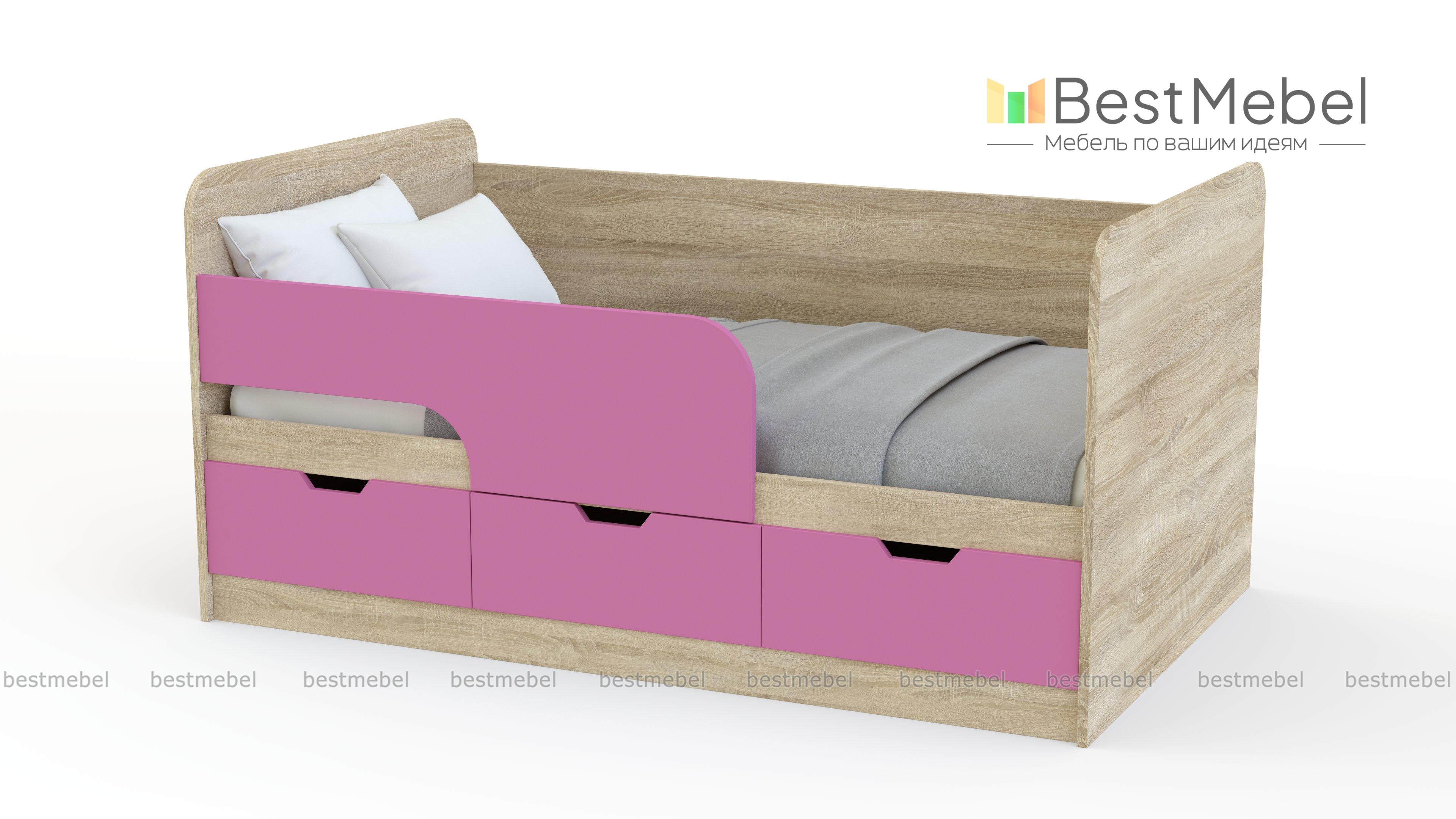 Детская кровать Минни BMS подарит ребенку комфортный отдых и гармонично впишется в современный интерьер. Уютная модель оборудована просторным спальным местом, высокими скругленными спинками и защитным бортиком. Эффективно использовать пространство помогут три выдвижных ящика в основании, удобных для хранения постельного белья и игрушек. Ручки-вырезы сделают пользование безопасным для ребенка. Купить детскую кровать Минни BMS, подобрав одну из ярких расцветок, приглашаем в наш интернет-магазин.