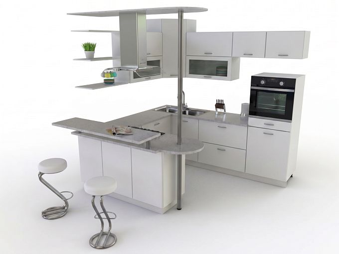 Кухня с барной стойкой Инеза BMS – это модель в светлом оттенке для поклонников ультрасовременных дизайнов. П-образная модель станет прекрасным выбором для студий, сэкономит полезную площадь и сделает интерьер эргономичным. Горизонтальные навесные шкафчики и полки визуально облегчают композицию, а для зонирования используется барная стойка с двухуровневой столешницей на радиусном основании. Купить кухню с барной стойкой Инеза BMS вы сможете в нашем интернет-магазине, подобрав оптимальные параметры.