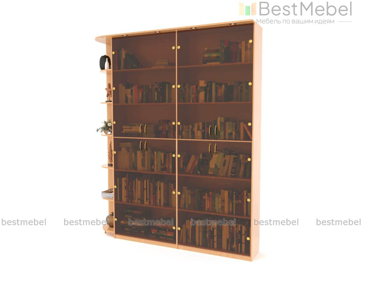 Бюджетная модель библиотеки с угловым элементом станет прекрасным хранилищем Ваших книг, а также антиквариата. Библиотека состоит из отдельных модулей. Главной особенностью является закругленный радиусный элемент с открытыми полками, который достаточно удобный и многофункциональный. Мебель с угловыми элементами способствует восприятию габаритов комнаты по-разному: маленькую делает зрительно шире, большой - добавляет наполненности. На нашем сайте Вы сможете заказать библиотеку с угловым элементом по самой приемлемой цене.
