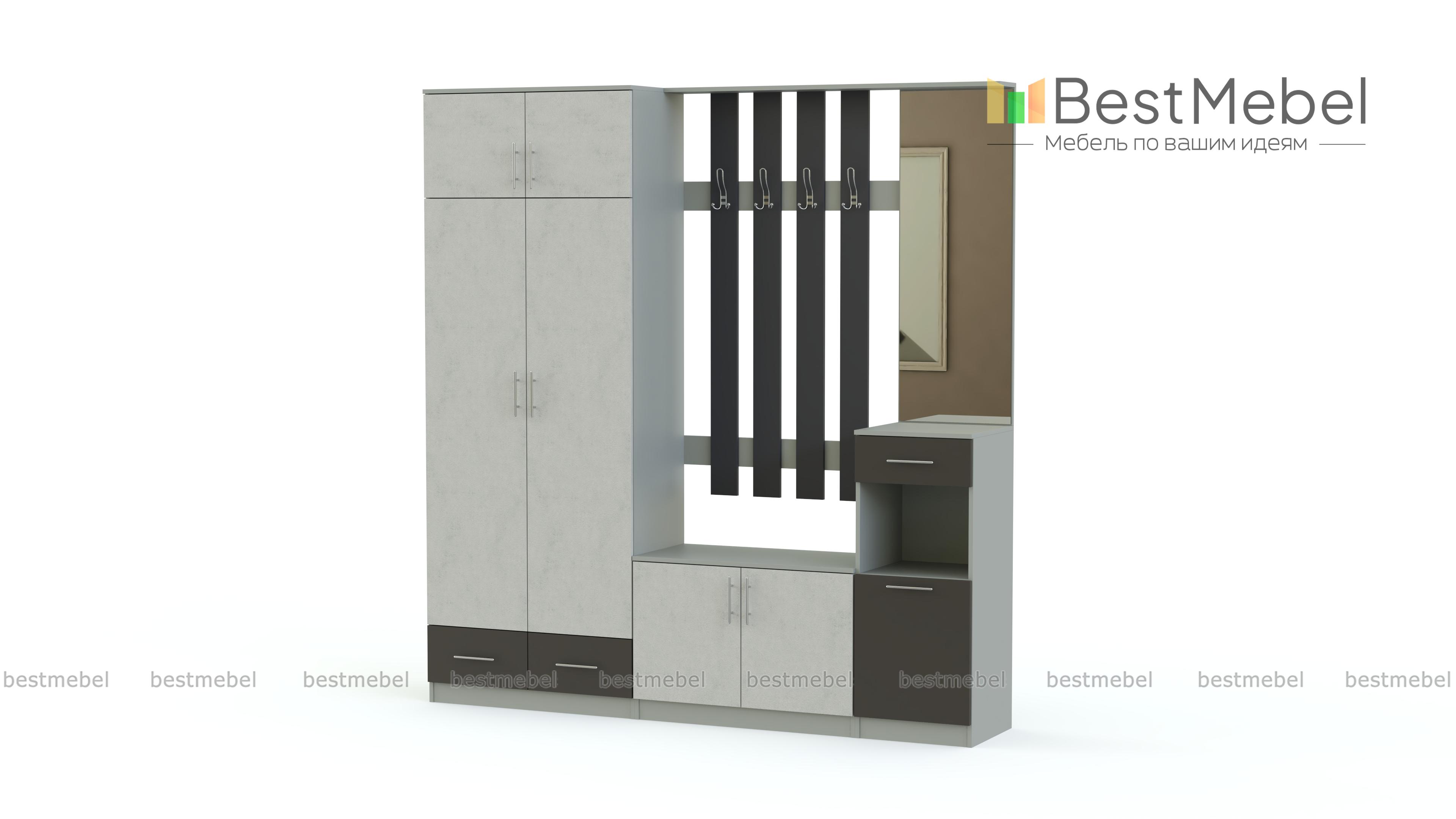 Стенка-прихожая «Идеал 20» BMS – современная стенка, которую отличает не только вместительность, но и яркий дизайн. Распашной платяной шкаф, две тумбы и панель с крючками и зеркалом выполнены в светлом оттенке под массив дерева и декорированы сочными матовыми вставками контрастного цвета. Интересный акцент добавит домашнему интерьеру красок и создаст позитивное настроение. Купить стенку-прихожую «Идеал 20» BMS по привлекательной цене вы можете в нашем интернет-магазине.