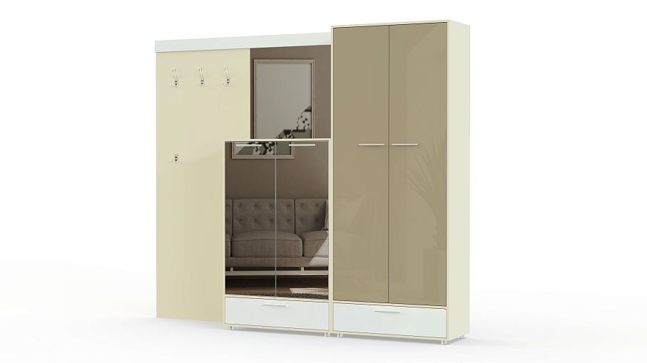 Прихожая Ева 11 BMS отличается эффектным минималистичным дизайном и высокой функциональностью. Визуально легкая композиция включает в себя два распашных шкафа для одежды с выдвижными ящиками в основании, незаменимое в интерьере прихожей зеркало и панель с крючками и штангой. В оформлении фасадов скомбинированы белоснежный и цветной глянец с хромированной фурнитурой. Купить прихожую Ева 11 BMS для ультрасовременных квартир и студий приглашаем в наш интернет-магазин.