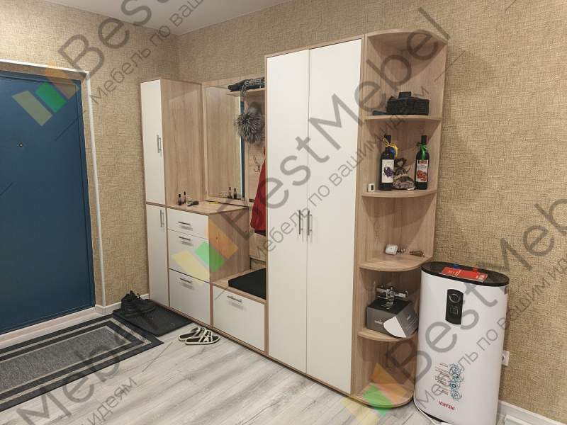 Прихожая Санторо BMS отличается минималистичным дизайном, а природные оттенки с имитацией древесной фактуры добавляют интерьеру тепла. Композиция радует большим количеством модулей: распашной шкаф, торцевой стеллаж, узкий двухдверный пенал, открытая вешалка, обувница и навесное зеркало, дополненное высокой тумбой. Светлые фасады без декора просты в уходе и долговечны. Купить прихожую Санторо BMS с учетом оптимальных размеров вы сможете в нашем интернет-магазине.
