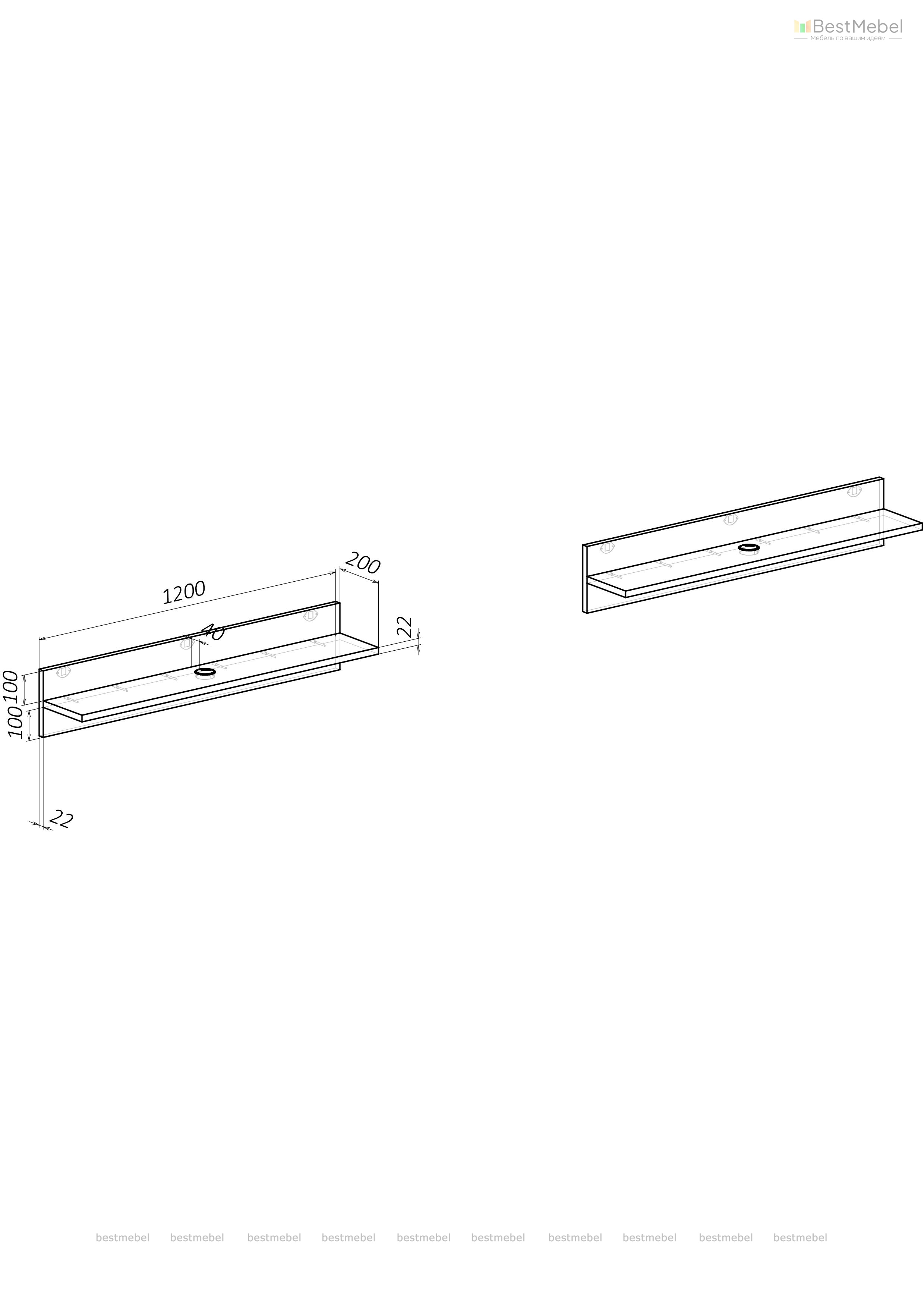 ЭСКИЗ Полки настенные №000127288 (1200х222х222)