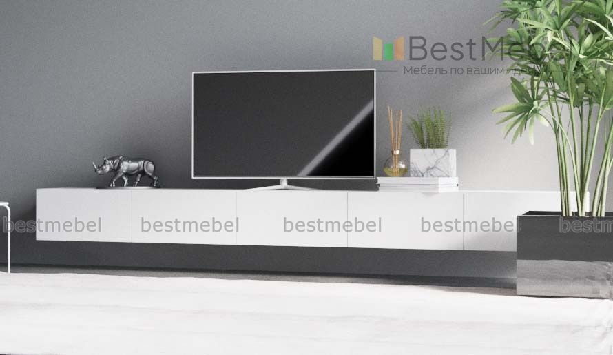 Тумба под ТВ Лонг 140 BMS станет дополнением модульного комплекта или может использоваться самостоятельно в интерьере современной гостиной, спальни, просторного холла. Удлиненная низкая тумба отличается минималистичным дизайном – строгую геометрию формы подчеркивает универсальный белый цвет. Навесная модель нестандартно оформит зону ТВ, эффектно разместит аппаратуру, предметы декора и множество бытовых мелочей, с двумя вырезами под провода и беспроводными зарядками.