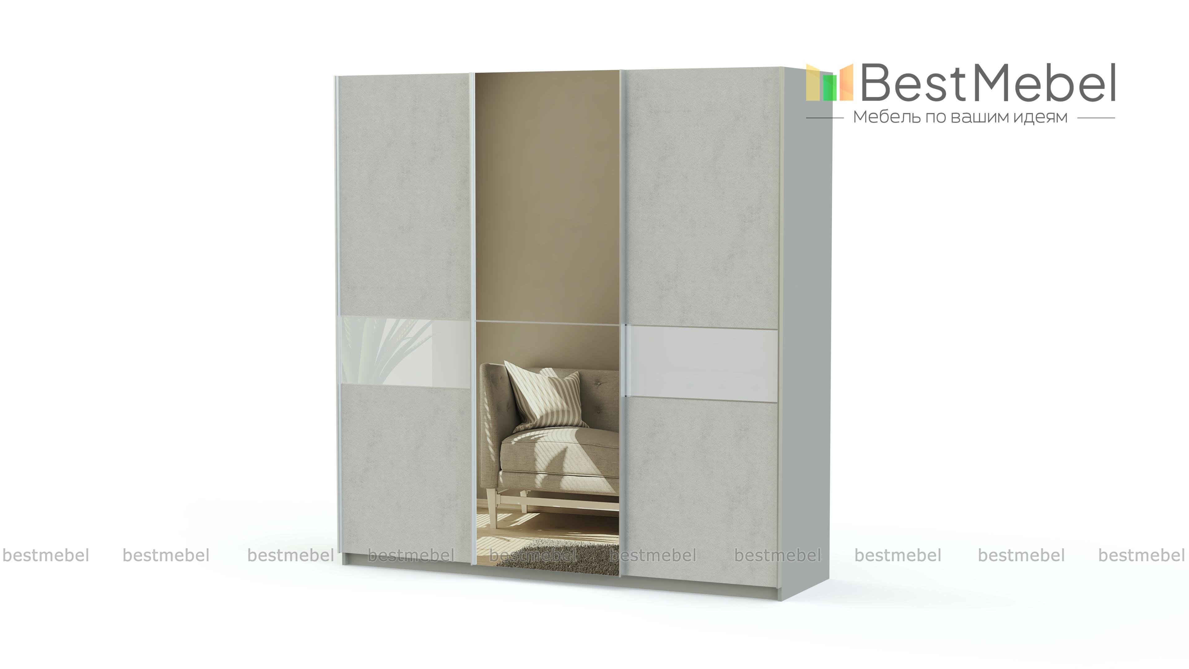 Вместительный трехстворчатый шкаф-купе Элит 53 BMS смотрится легким за счет светлых, с яркой вставкой фасадов и подвесной системы дверей. Зеркальная дверь не только удобна, но придаст помещению объема. Просторные платяное и бельевое отделения, оборудованные штангой и полками, максимально удобны для размещения большого количества вещей. Цветное стекло фасадов практично и устойчиво к повреждениям. В нашем интернет-магазине вы сможете подобрать для шкафа оптимальные параметры.