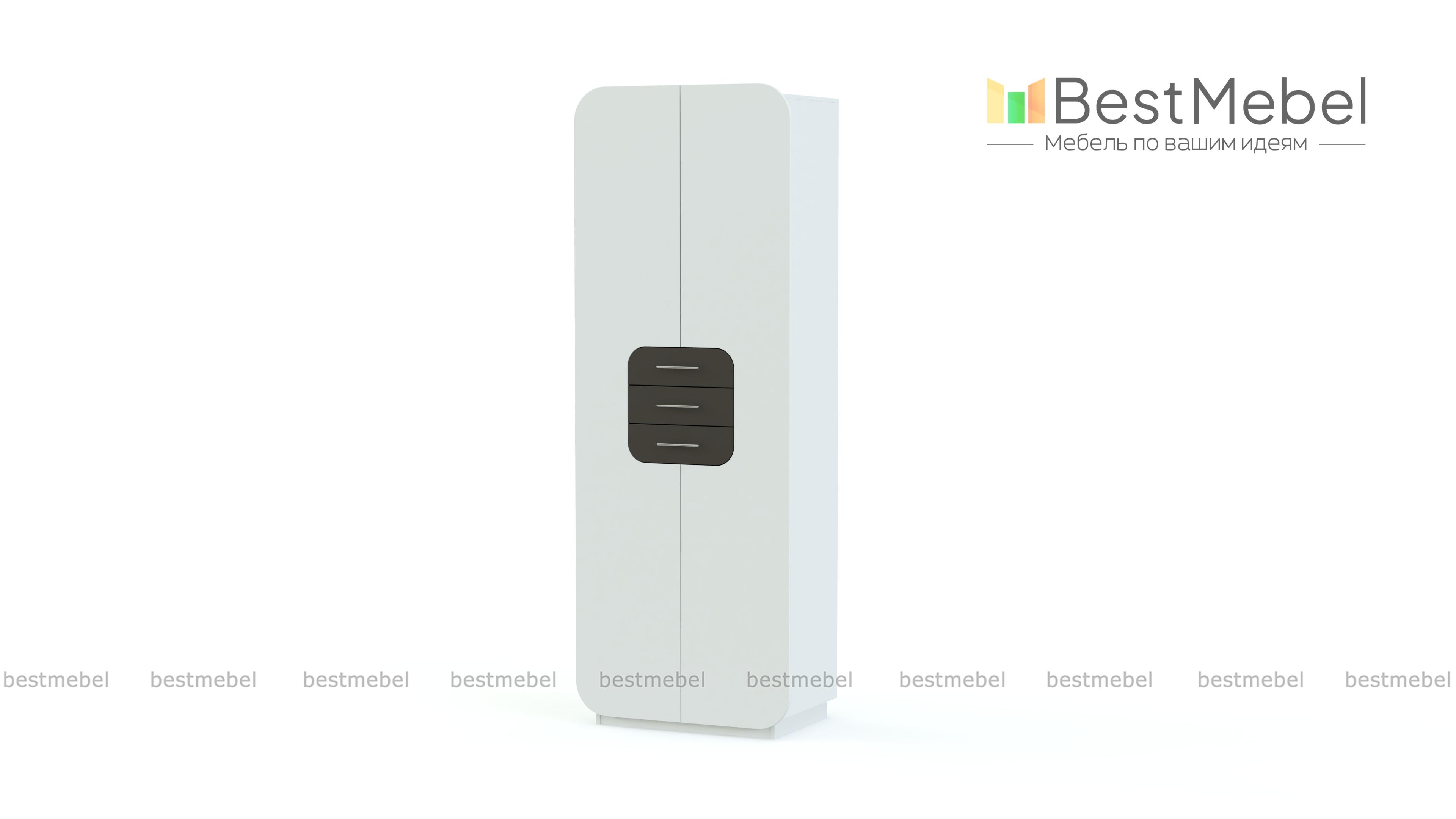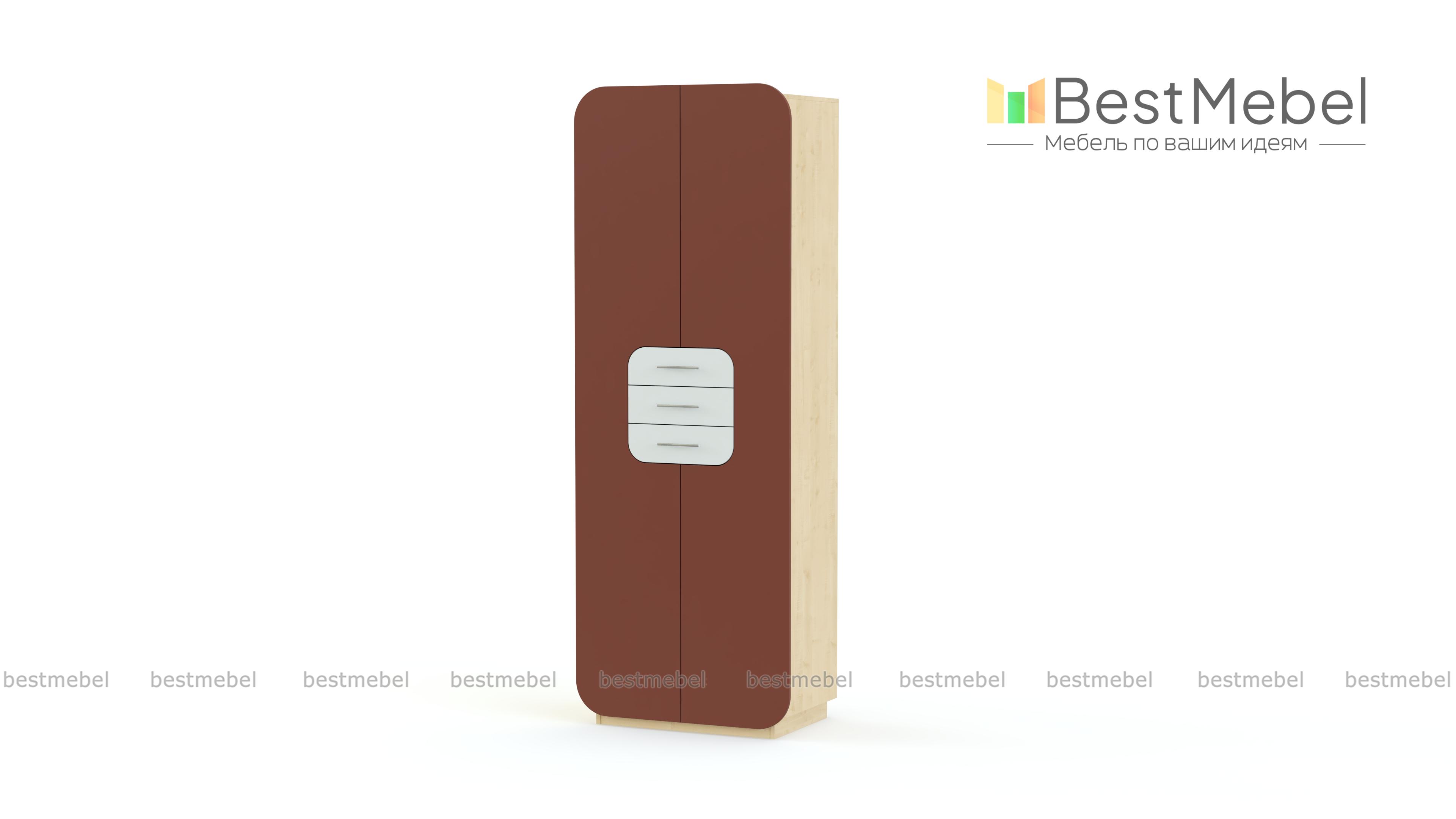 Распашной шкаф Модерно 4.1 BMS привлекает внимание нестандартным дизайном. Распашные двери и три выдвижных ящика в центральной части скруглены по краям и выполнены в контрастных оттенках. Матовые поверхности визуально увеличивают помещение, долговечны и придают шкафу особенно стильный вид. Внутреннее наполнение – вместительные полки для одежды и обуви. Купить Распашной шкаф Модерно 4.1 BMS, подобрав оптимальное цветовое сочетание, вы сможете в нашем интернет-магазине.
