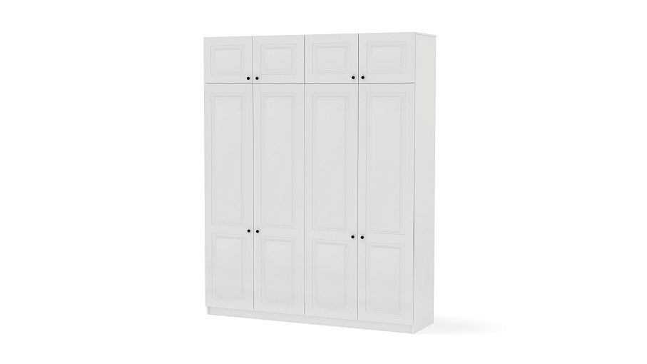 Шкаф распашной Бонн 10 BMS в комплекте с антресолью легко решает проблему хранения несезонной одежды и габаритных постельных принадлежностей. Высокая четырехдверная конструкция состоит из большого и малого платяных отделений, полок для белья и распашных шкафчиков сверху. Светлый фасад с круглыми миниатюрными ручками и фрезеровкой долговечен и прост в уходе. Купить шкаф распашной Бонн 10 BMS вы сможете в нашем интернет-магазине, подобрав размеры и наиболее подходящее цветовое решение.