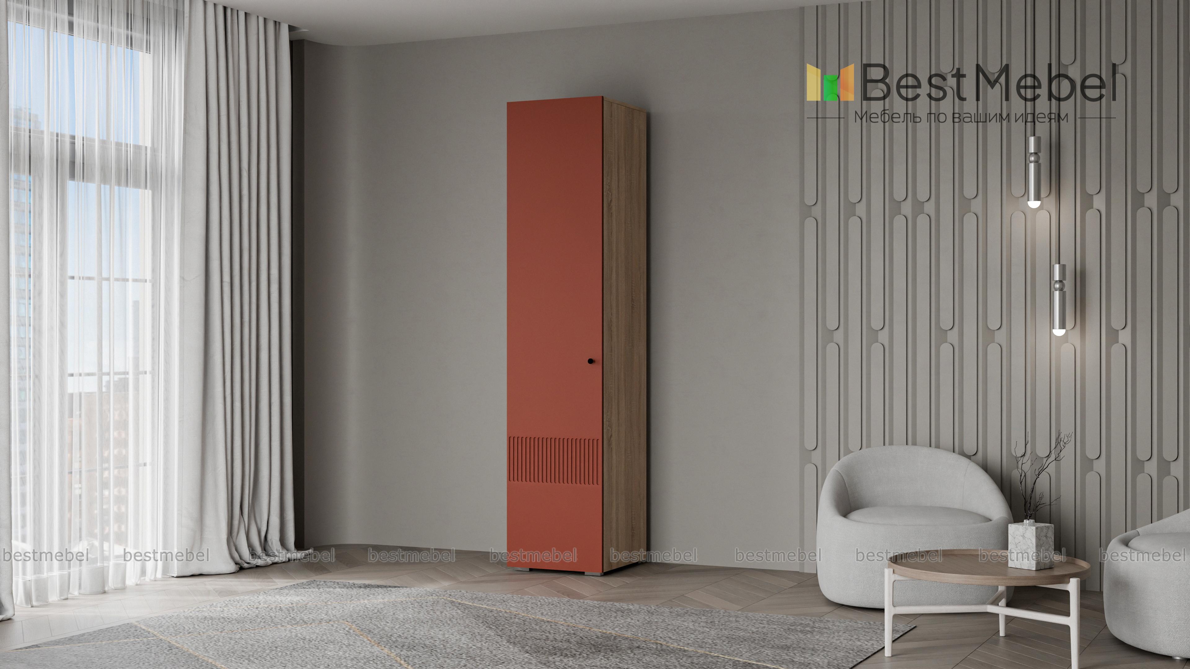Шкаф распашной Джосс 1 BMS представляет собой компактный пенал для одежды. Внутри единственного отделения находятся штанга для вещей на вешалках и верхняя полка под аксессуары или коробки с мелочами. Фасад шкафа с фрезеровкой по низу выглядит ярко и современно, создавая стильный интерьер в вашей прихожей, спальне или гостиной. Купить шкаф распашной Джосс 1 BMS в подходящем размере и любых оттенках из каталога приглашаем недорого в наш интернет-магазин.