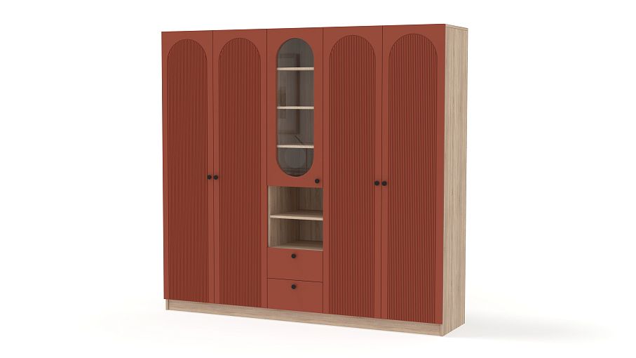 Шкаф распашной Рене 15 BMS — это композиция для гостиной или спальни, объединившая двухдверные отделения для одежды и комбинированную с ящиками и полками витрину. В одном месте будут компактно храниться предметы гардероба, важные мелочи, книги и еще многое другое. Фрезеровка на дверцах шкафа, выполненных из МДФ, повторяет форму изящных вырезов витрин. Купить шкаф распашной Рене 15 BMS, изготовленный по вашим размерам из качественных материалов, приглашаем в наш интернет-магазин.