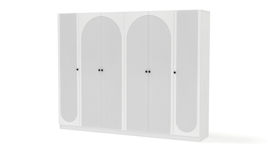Шкаф распашной Вивьен 18 BMS станет эффектным дополнением просторной современной спальни или прихожей. Два двухдверных отделения в центре и две однодверные секции по бокам предоставляют много места для хранения гардероба и постельных принадлежностей. Светлое оформление придает габаритной конструкции легкость, а геометричный рельеф — выразительность. Купить шкаф распашной Вивьен 18 BMS с индивидуальным подбором размеров, цвета и наполнения приглашаем в наш интернет-магазин.