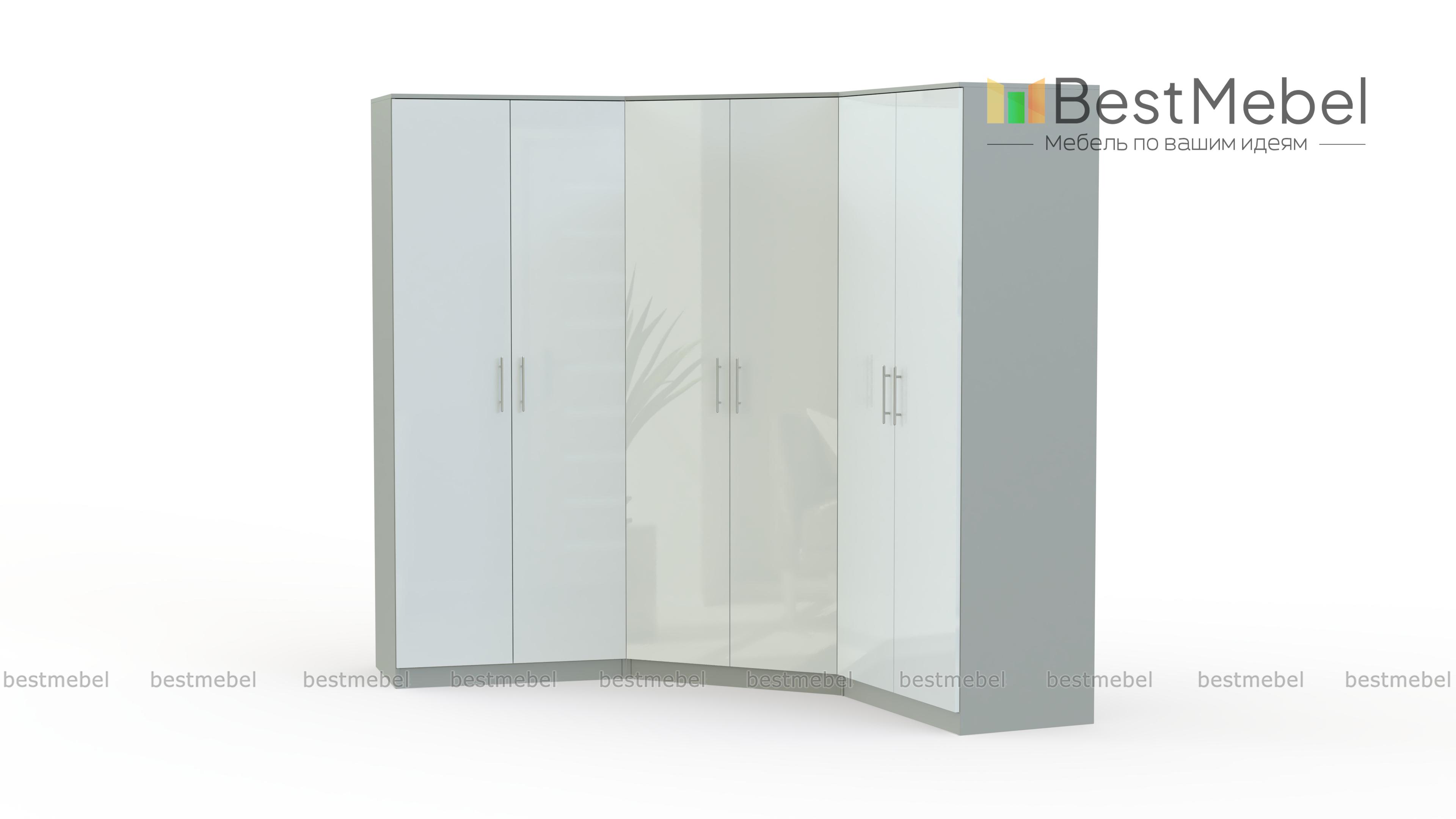Шкаф угловой Глянец 21 BMS бережно разместит гардероб и составит стильный ансамбль с другой мебелью в современной стилистике. Эффектная композиция в нежных светлых цветах включает в себя угловой двухдверный шкаф и два прямых, оснащенных платяными и бельевыми отделениями. Гладкие сплошные фасады, оснащенные удобными ручками-рейлингами, отличаются износостойкостью, и шкаф будет долго радовать вас эстетичным видом. Купить шкаф угловой Глянец 21 BMS приглашаем в наш интернет-магазин с выбором цвета и размеров.