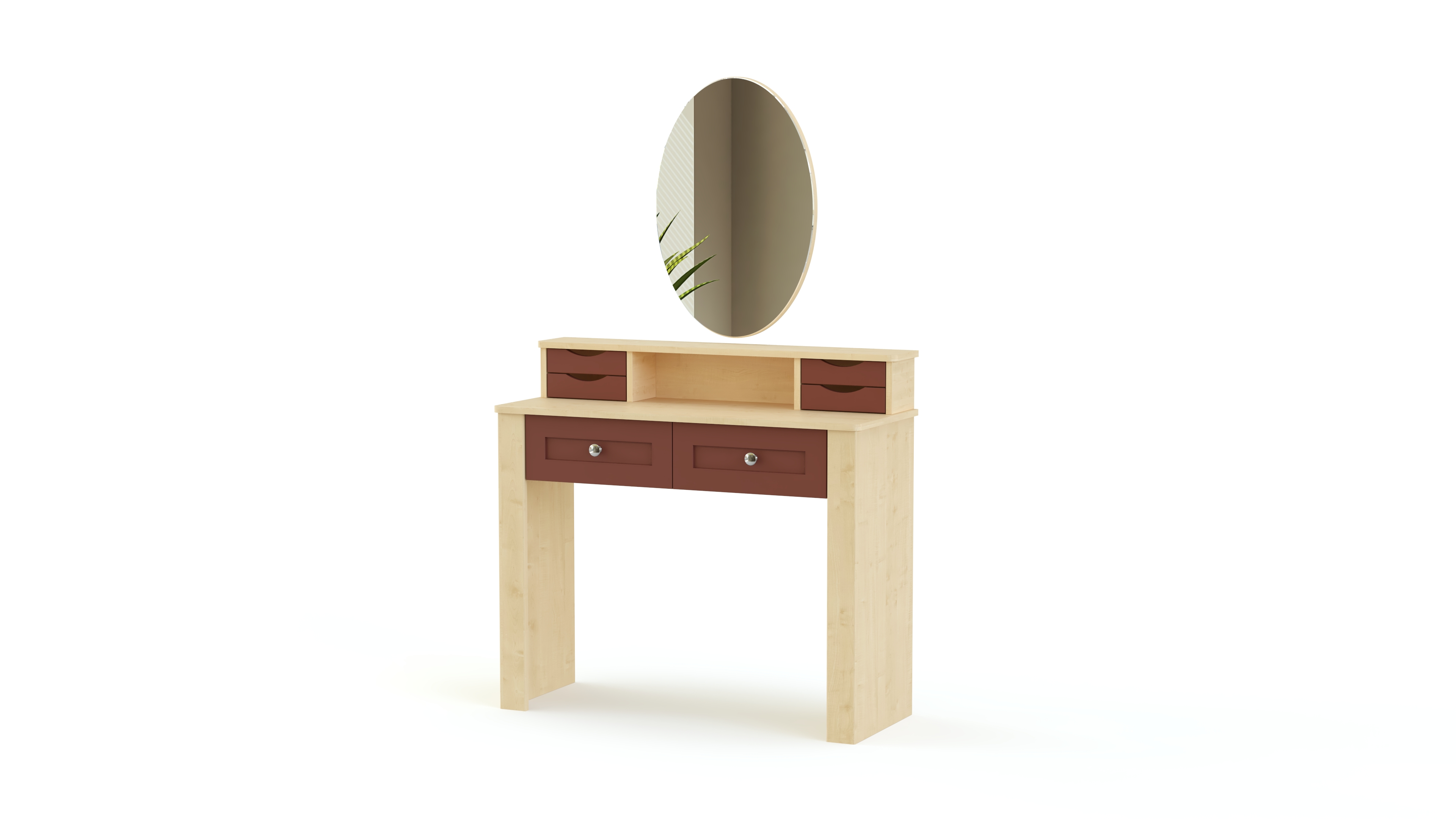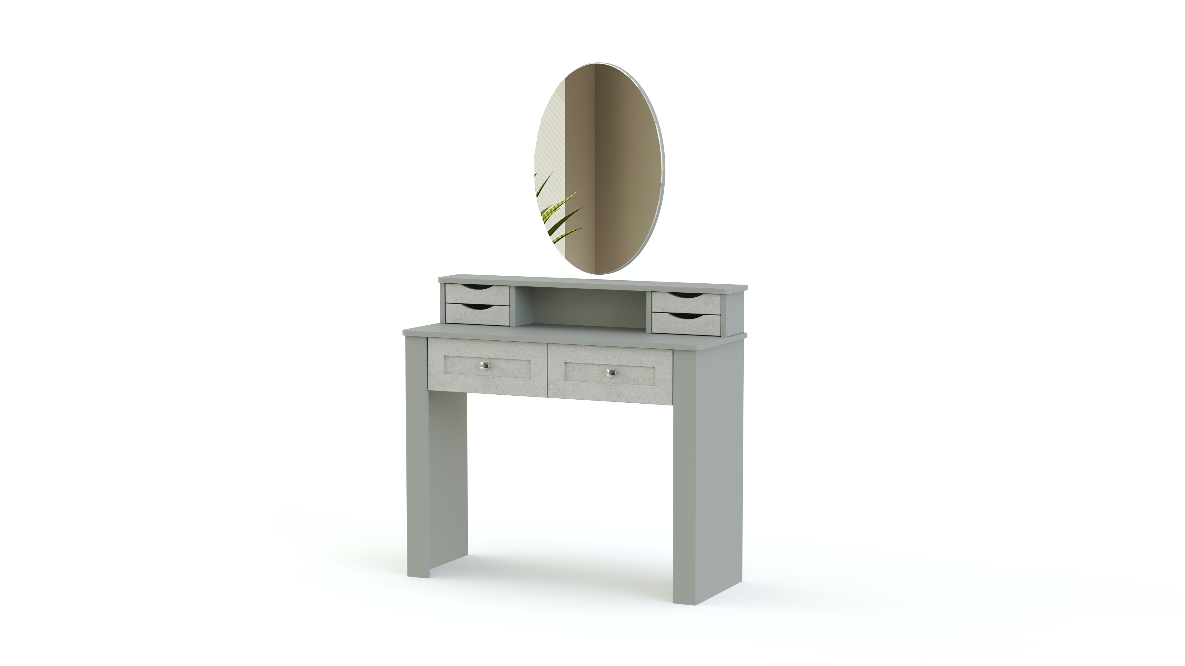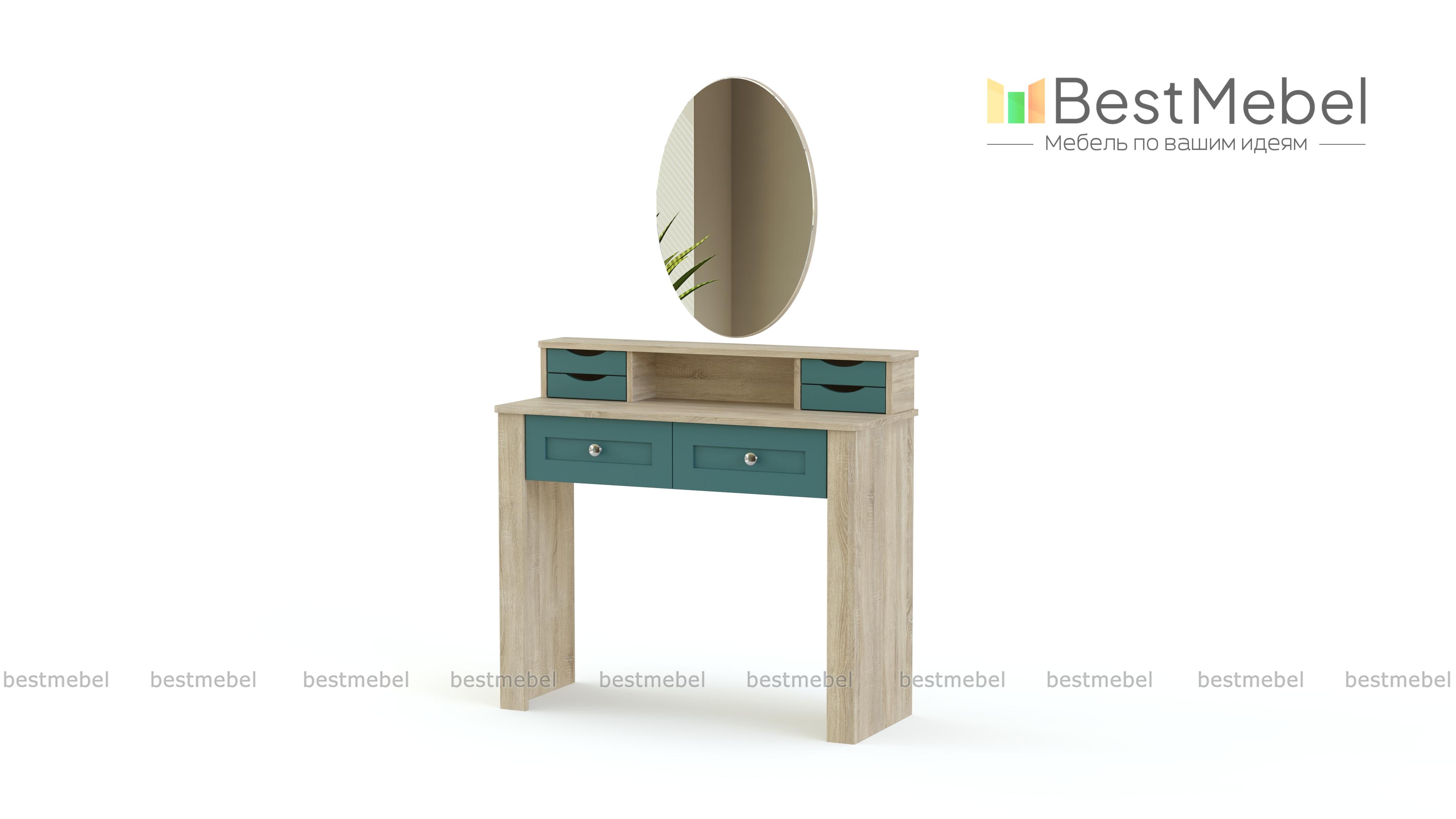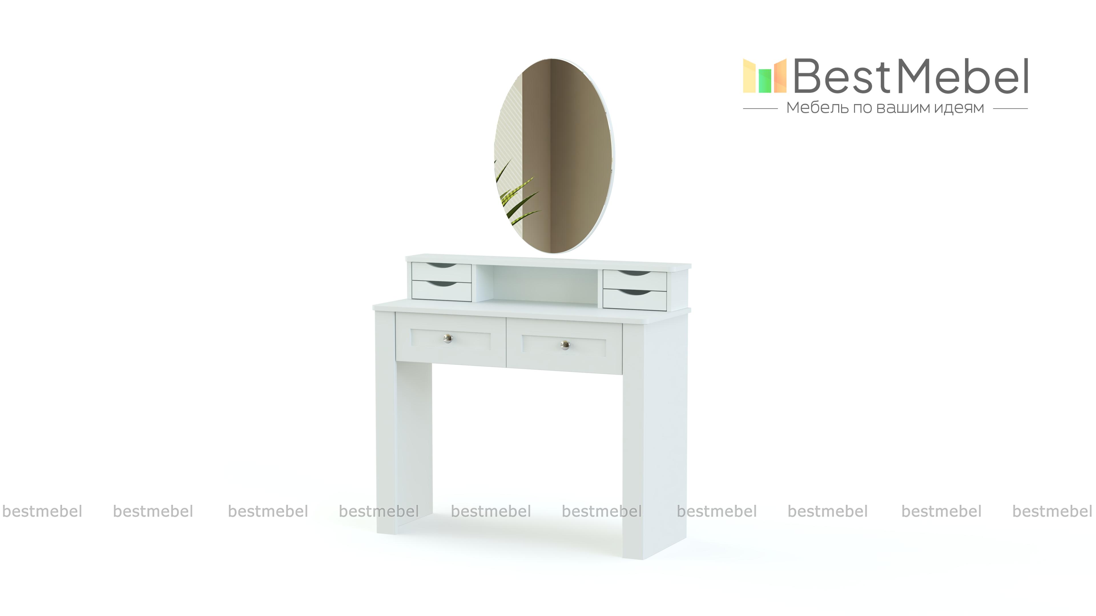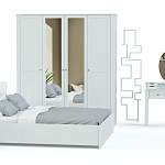 Еще одна модель в полюбившемся владельцам современных квартир и загородных домов стиле прованс. Нежные цвета, элегантный внешний вид и изящный декор делают спальню Бриз комплектация 2 BMS неизменно популярной. Гарнитур состоит из вместительного шкафа с зеркальными дверцами, двуспальной кровати с мягким изголовьем, дополненной оригинальными тумбами, и милого туалетного столика с винтажными ящичками и овальным поворотным зеркалом для идеального макияжа.