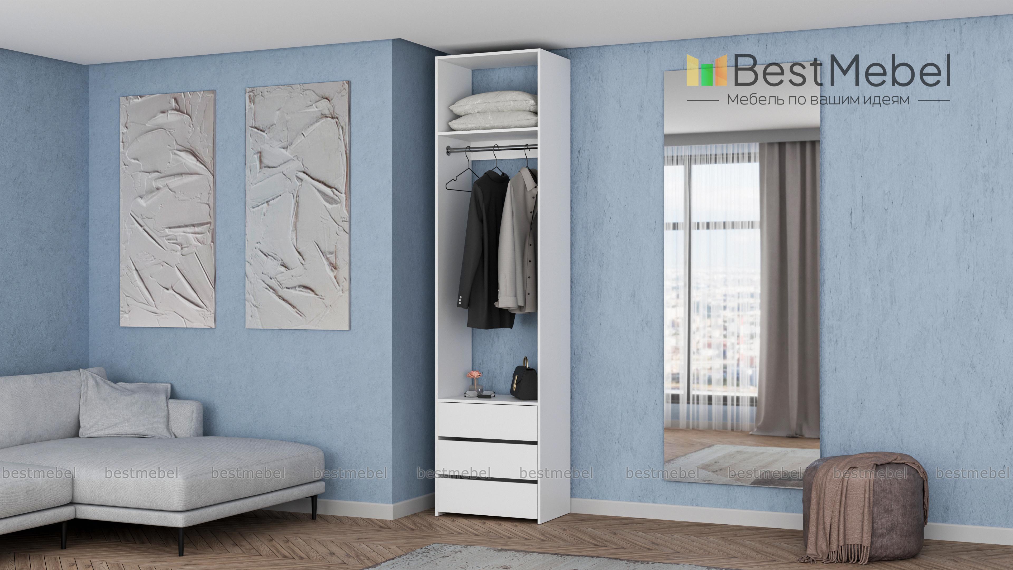 Стеллаж для одежды Мирта 33 BMS решает проблему хранения в маленьких прихожих и гардеробных. Компактная односекционная модель в светлом оттенке эстетично выглядит и не загромождает пространство. Для размещения в удобном доступе одежды, обуви и сезонных аксессуаров узкий стеллаж оборудован полкой, штангой и тремя выдвижными ящиками снизу. Купить стеллаж для одежды Мирта 33 BMS приглашаем в наш интернет-магазин с возможностью выбора цвета и размеров.