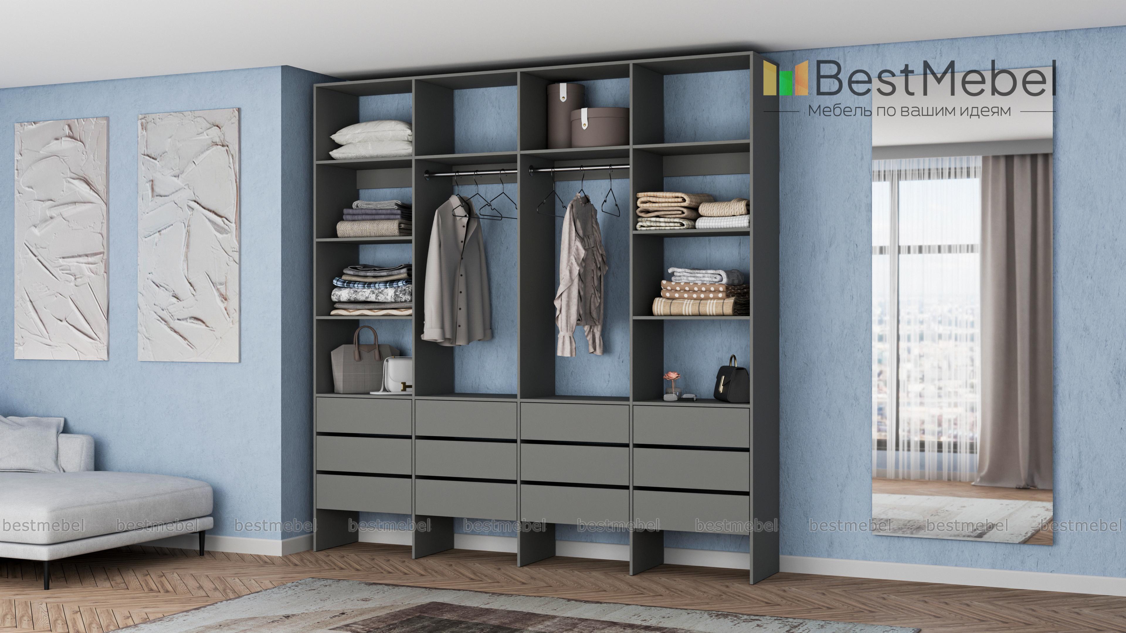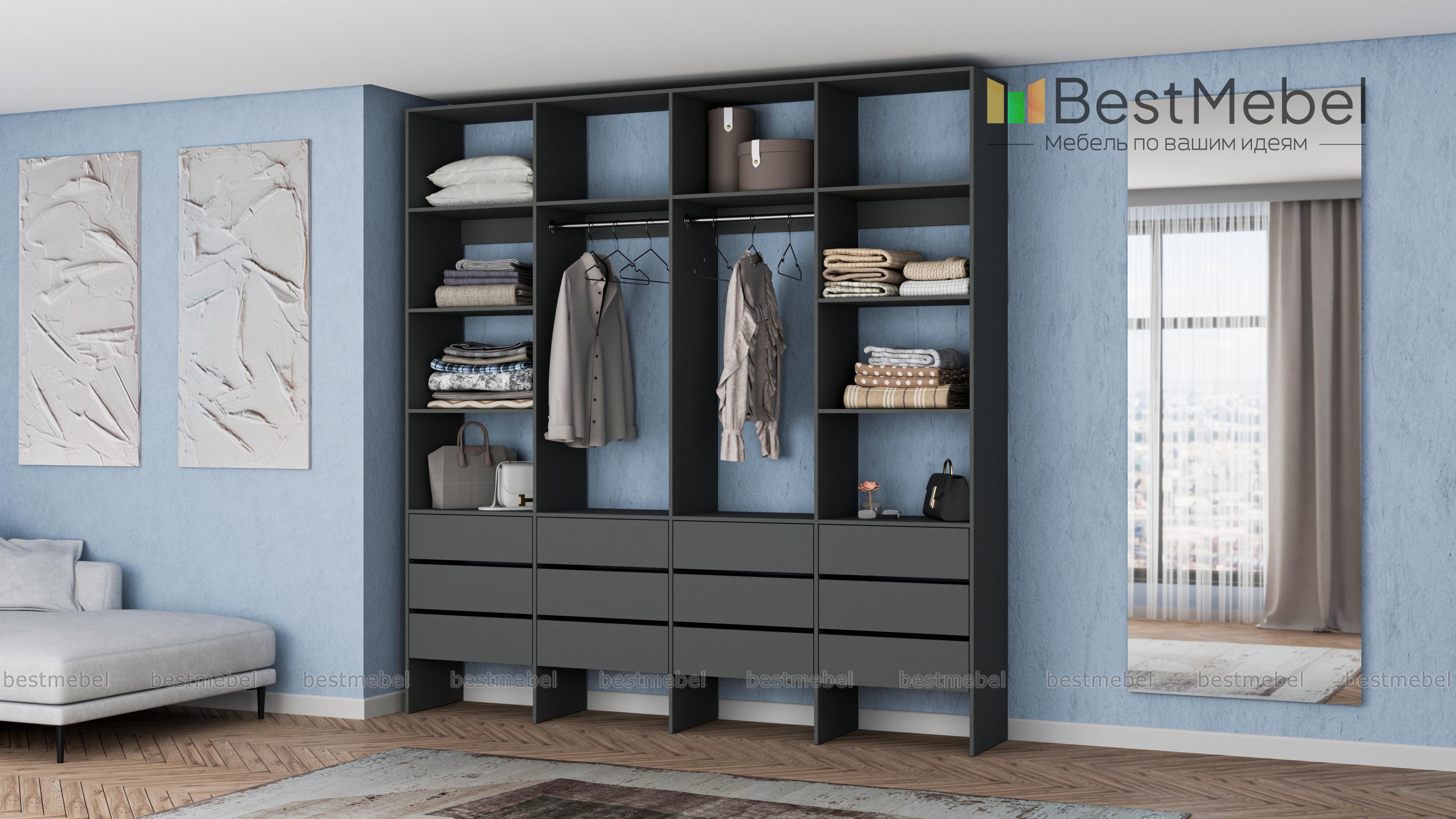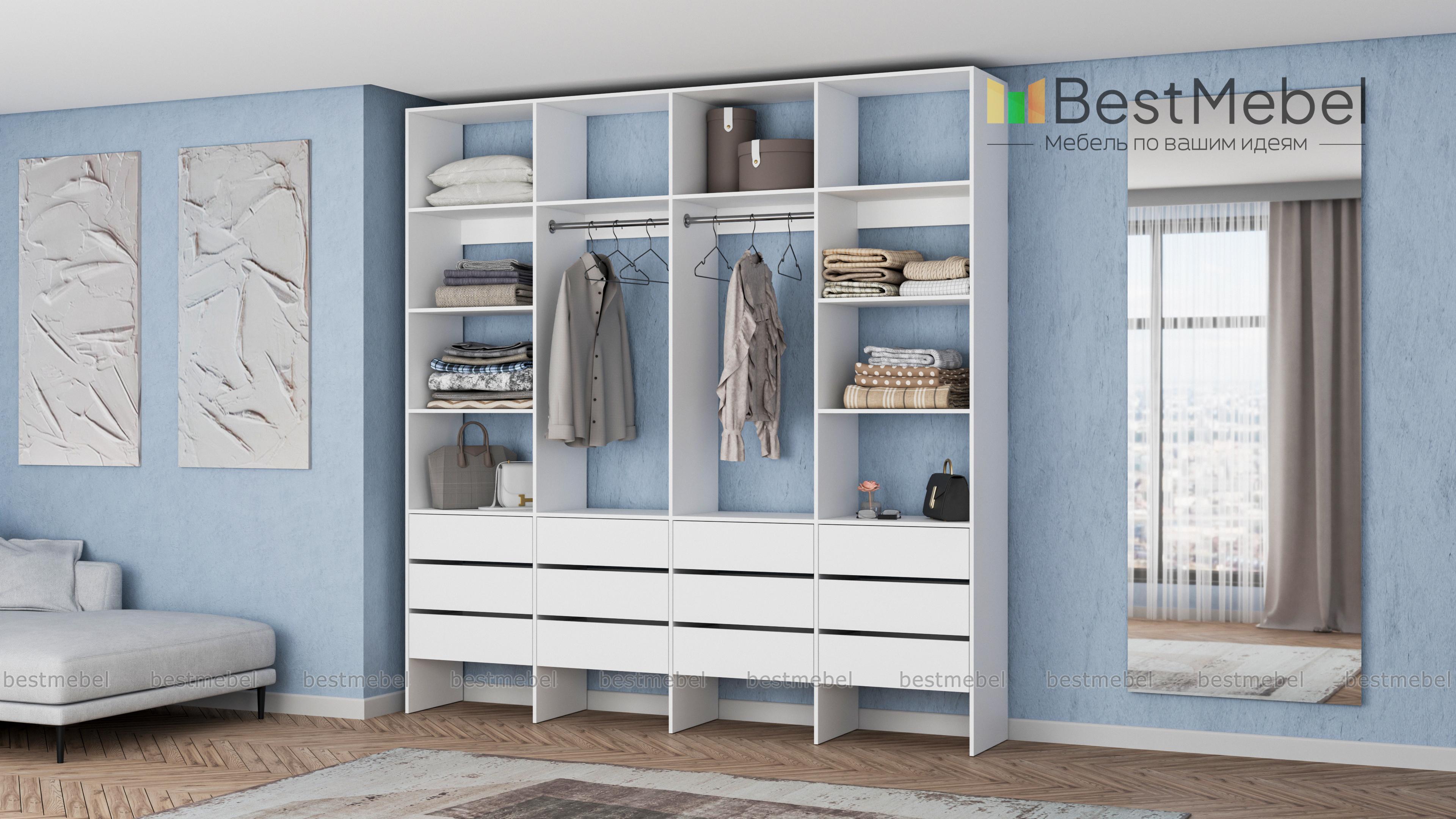 Стеллаж для одежды Мирта 64 BMS — современное решение для вашей прихожей и гардеробной. Конструкция из износостойкой ламинированной ДСП базового оттенка надежна, эстетична и доступна по цене. Практичная комбинация двух штанг, верхних и боковых полок, а также большого количества выдвижных ящиков делает хранение гардероба максимально удобным. Купить стеллаж для одежды Мирта 64 BMS вы сможете на сайте нашего интернет-магазина, подобрав по своему вкусу цвет и размеры.