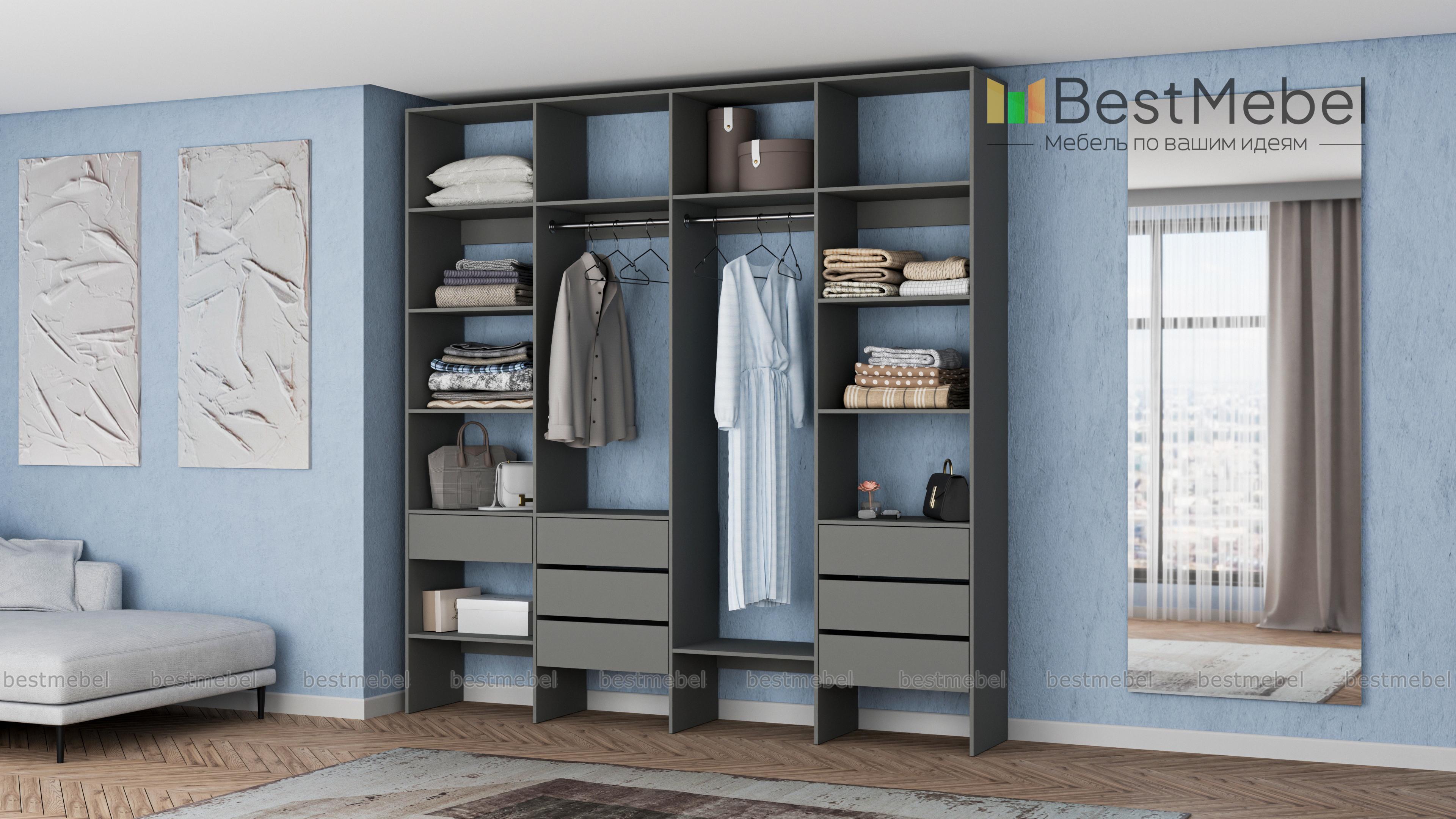 Стеллаж для одежды Мирта 67 BMS сделает пространство вашего дома легче и свободнее. Открытая конструкция объединила две штанги — под одежду разной длины, бельевые полки и удобную комбинацию выдвижных ящиков. Отсутствие декора и накладной фурнитуры в сочетании с базовым оттенком и простотой линий делает стеллаж по-настоящему универсальным. Купить стеллаж для одежды Мирта 67 BMS вы всегда сможете на сайте нашего интернет-магазина, по желанию изменив цвет и размеры.