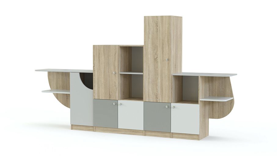 Стеллаж Шкипер 1 BMS выполнен в форме корабля и поможет создать яркий тематический интерьер. «Кораблик», оборудованный вместительными открытыми полками и распашными шкафчиками разной высоты для удобного хранения игрушек, книг и учебных материалов, станет частью игровой зоны. Модель выполняется в нескольких цветах на выбор из влагостойких, простых в уходе и долговечных материалов. Купить стеллаж Шкипер 1 BMS для меблировки детских дошкольных учреждений приглашаем в наш интернет-магазин.