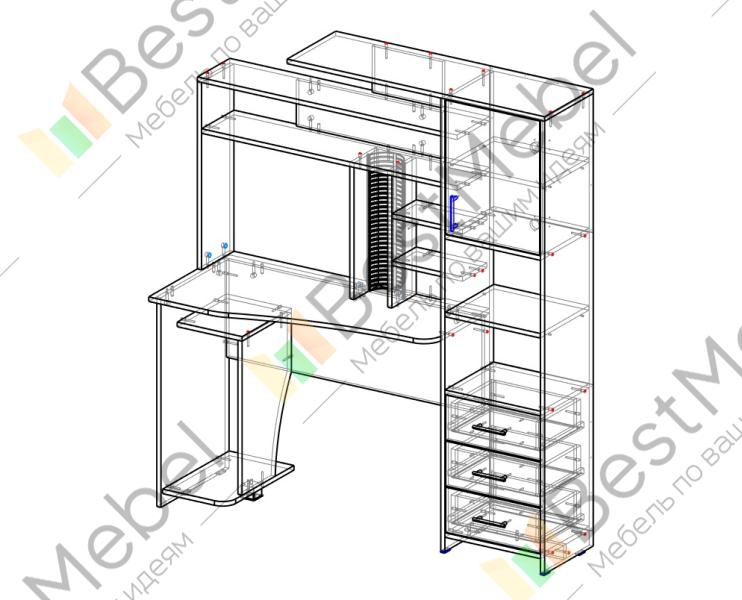 Заказывали по собственным размерам (1280 х 1700). Длина меньше стандартной на 12 см. Это очень сказалось на рабочем пространстве. Ведь уменьшили ширину именно стола, а не шкафа. Согласования эскиза по почте не было, лишь по телефону согласовали общие размеры и цвет. В итоге, самостоятельно убрали вертикальную стойку для дисков, тем самым чуть освободив место для монитора.Что касается глубины, то заявленный стандарт в 50 см оказался лишь на кусочке шириной 24 см. Далее постепенно глубина стола уменьшается. Честно говоря, мне маловато места. С другой стороны, стол-шкаф очень компактен. Открытая полка в шкафу съемная. Хотелось бы с задней стороны шкафа упор, чтобы полка не врезалась в стену.Из минусов: неправильно просверлили отверстия в одной вертикальной стойке, пришлось самим высверливать. Также не доложили гвоздей для задней стенки из двп. Из плюсов: быстро сделали и быстро привезли (заняло меньше недели).В целом, хорошо.