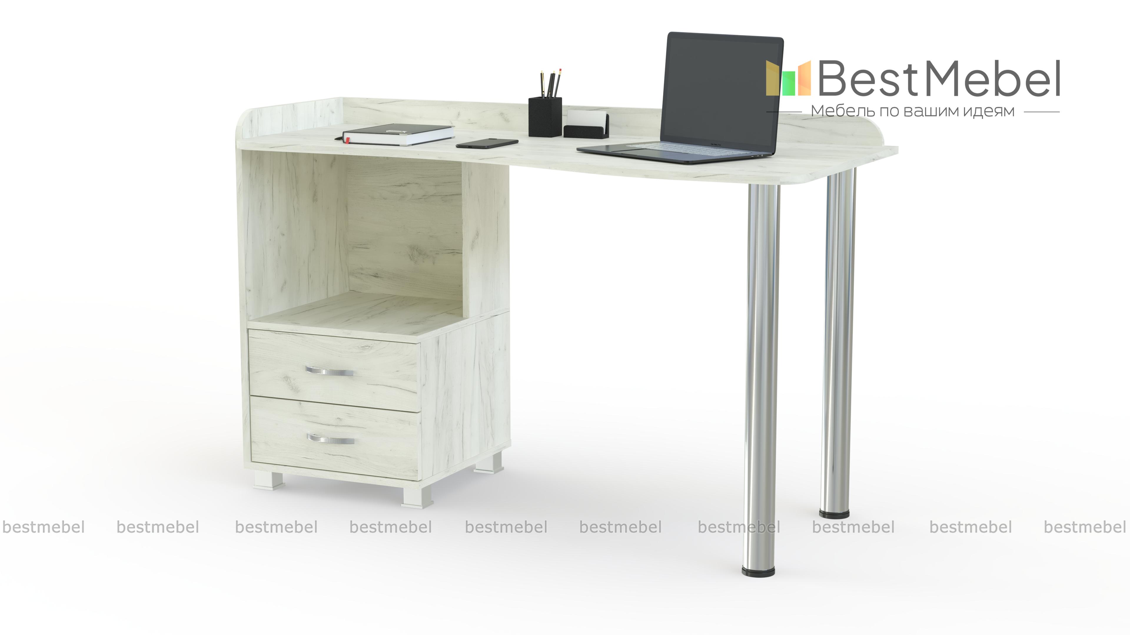Стол Нильсон СКМ-55 П BMS станет отличным выбором для небольших помещений благодаря компактным размерам. Угловая модель современного дизайна оборудована эргономично скругленной столешницей на хромированных опорах и тумбой с просторной нишей и двумя выдвижными ящиками для хранения мелочей. Защитные бортики уберегут письменные принадлежности от случайного падения. Купить стол Нильсон СКМ-55 П BMS для комфортной работы за компьютером вы сможет в нашем интернет-магазине.