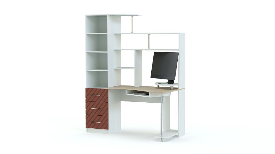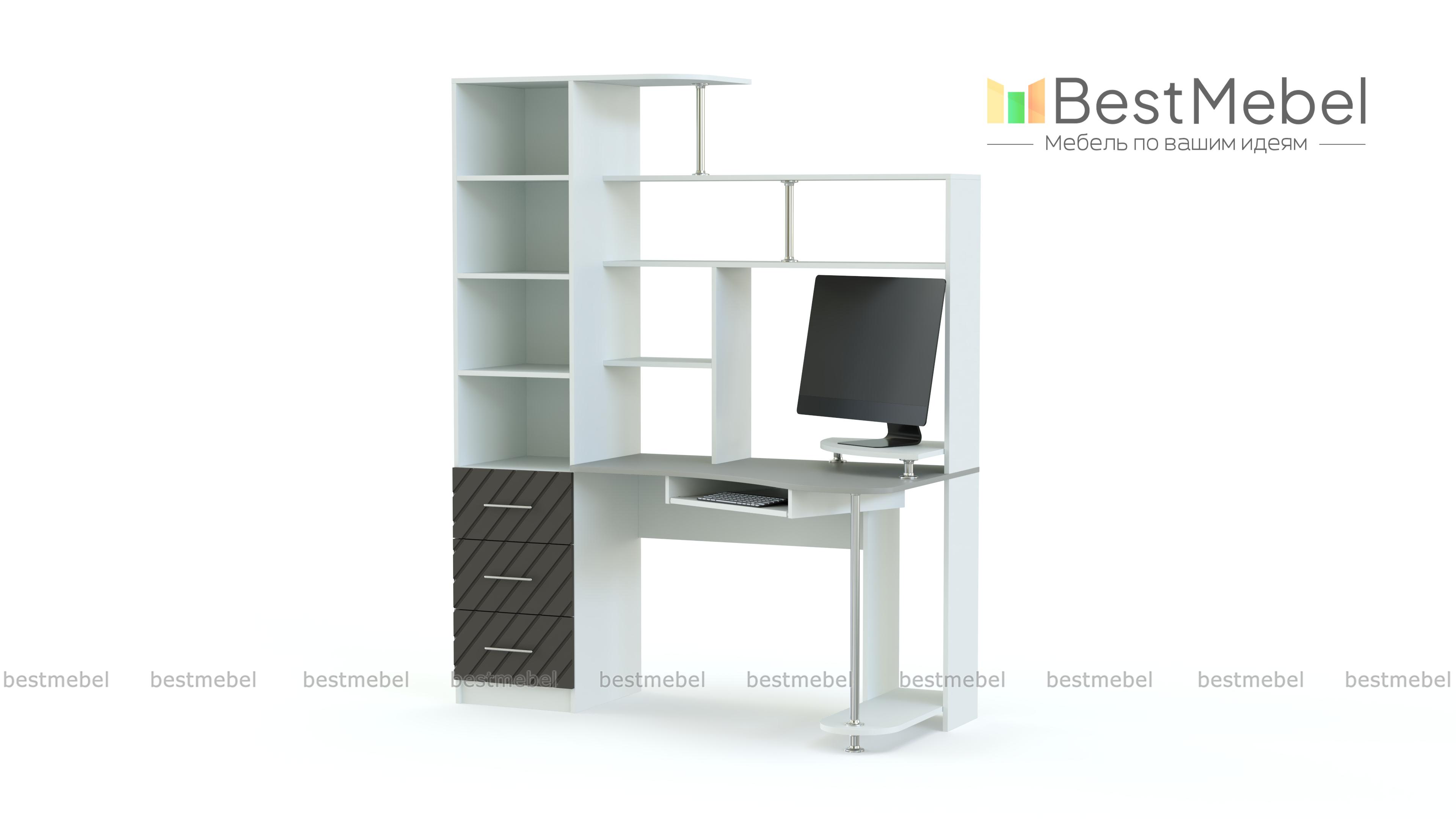 Стол Атланта BMS станет выбором тех, кто ценит функциональность и современный дизайн. Для максимально комфортной работы за компьютером модель оборудована столешницей эргономичной формы с подставкой под монитор и выдвижной панелью для клавиатуры. Для системного блока предусмотрена подставка на хромированной опоре, а книги, папки, канцелярские мелочи и предметы декора разместятся на открытых полках надстройки и в разноплановых отделениях пенала. Купить стол Атланта BMS, визуально легкий и практичный, вы сможете в нашем интернет-магазине.