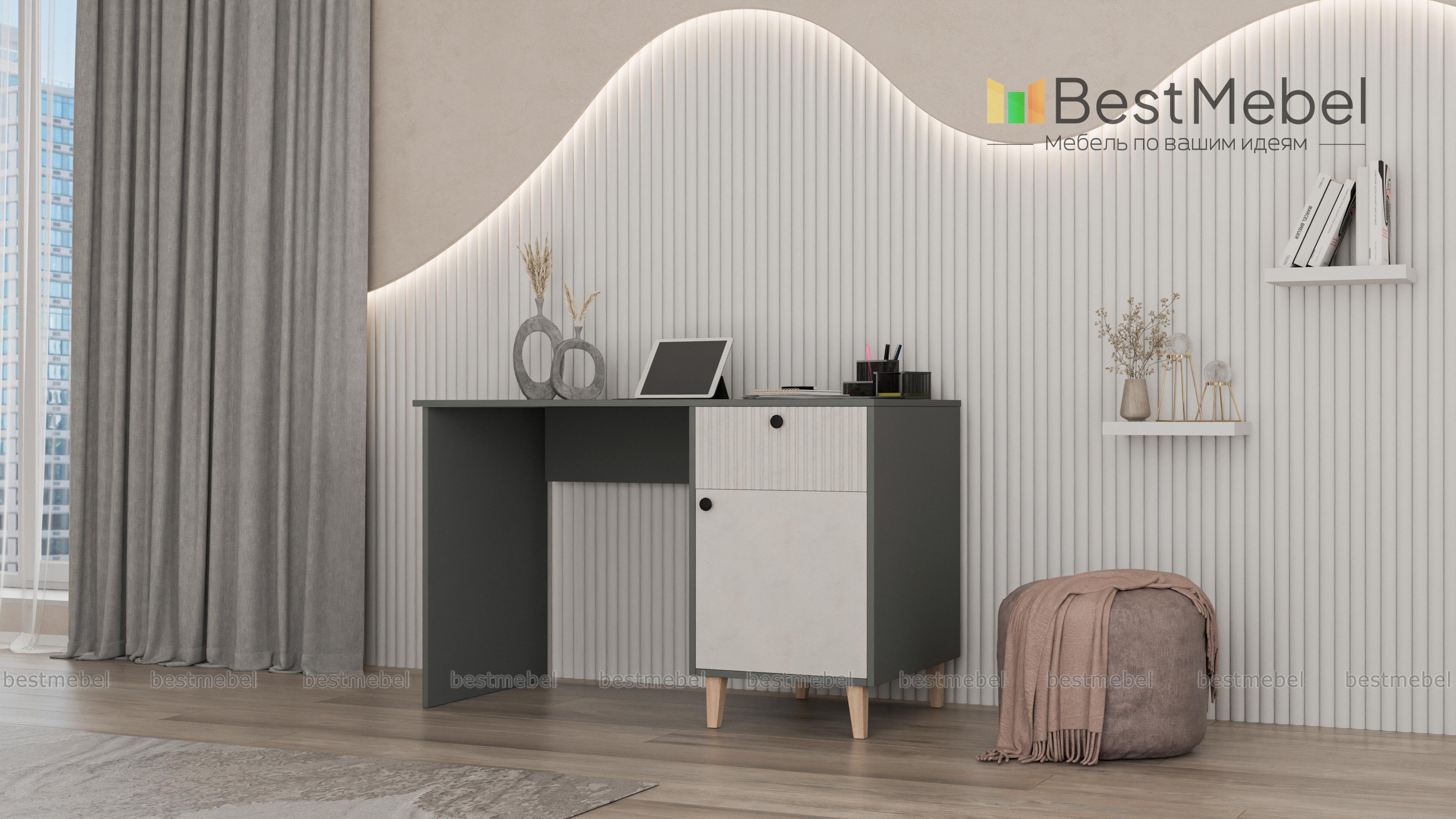 Стол письменный Брукс 3 BMS сочетает классическую форму с актуальным дизайном. Прямоугольная столешница и корпус выполнены из устойчивой к повреждениям ламинированной плиты природного оттенка, контрастный фасад украшает стильный рельеф. Для хранения канцелярских мелочей и других рабочих материалов используйте выдвижной ящик и распашное отделение с полками. Купить стол письменный Брукс 3 BMS вы сможете в нашем интернет-магазине, подобрав размеры, цвет и фурнитуру.