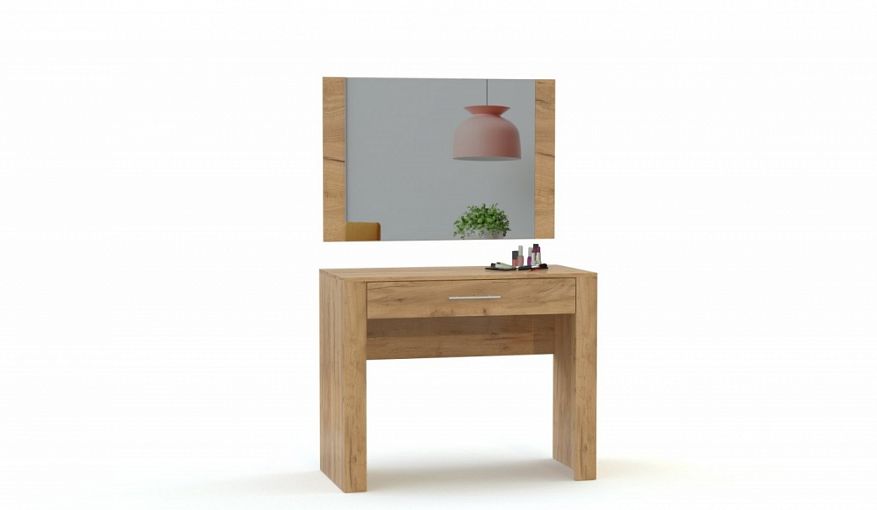 Туалетный столик Квадро 20 BMS поможет оборудовать комфортный уголок для ухода за собой и придаст завершенный вид спальному интерьеру. Прямоугольная модель с устойчивыми опорами и широкими накладками на фасаде оборудована вместительным выдвижным ящиком для хранения косметики и аксессуаров. Выполненный в теплых крафтовых оттенках столик дополнен навесным панно с зеркалом в тон корпусу. Купить туалетный столик Квадро 20 BMS для уютного интерьера с элементами стиля лофт или эко приглашаем в наш интернет-магазин.