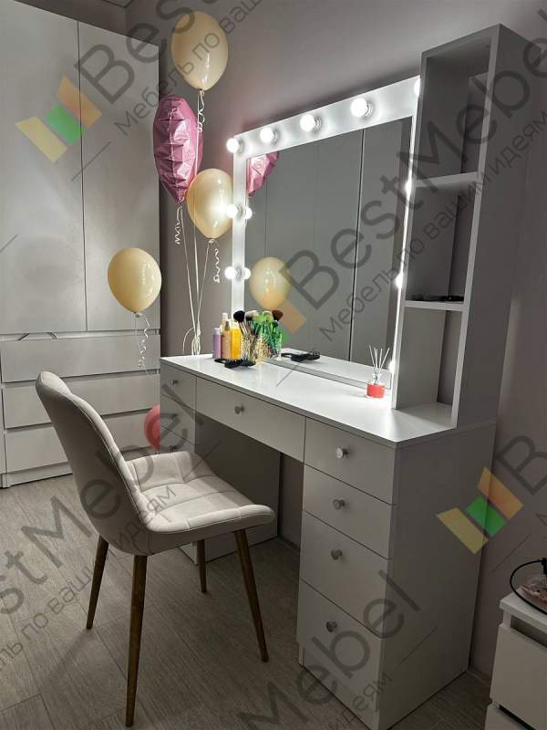 Туалетный столик Лацио 4 BMS дополнен продуманной системой хранения и позволит разместить под рукой все необходимые уходовые средства и аксессуары. Двухтумбовая модель с просторной столешницей и выдвижным ящиком в центральной части оборудована панно с зеркалом и боковыми открытыми полками. Особенно комфортным нанесение макияжа сделает встроенная по периметру зеркала подсветка. Купить туалетный столик Лацио 4 BMS и дополнить современный интерьер практичным предметом вам поможет наш интернет-магазин.