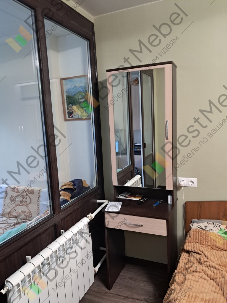 Стильное и элегантное трюмо, которое будет отлично смотреться в просторных помещениях и позволит по максимуму использовать небольшие пространства. Модель оснащена высоким распашным шкафчиком с зеркальной дверцей, перед которой можно и делать макияж, и причесываться, и примерять наряды. Множество необходимых вещей разместится на полках, а самое актуальное – в выдвижном ящике. Благодаря контрастному сочетанию цветов туалетный столик Танго BMS выглядит просто и дорого.