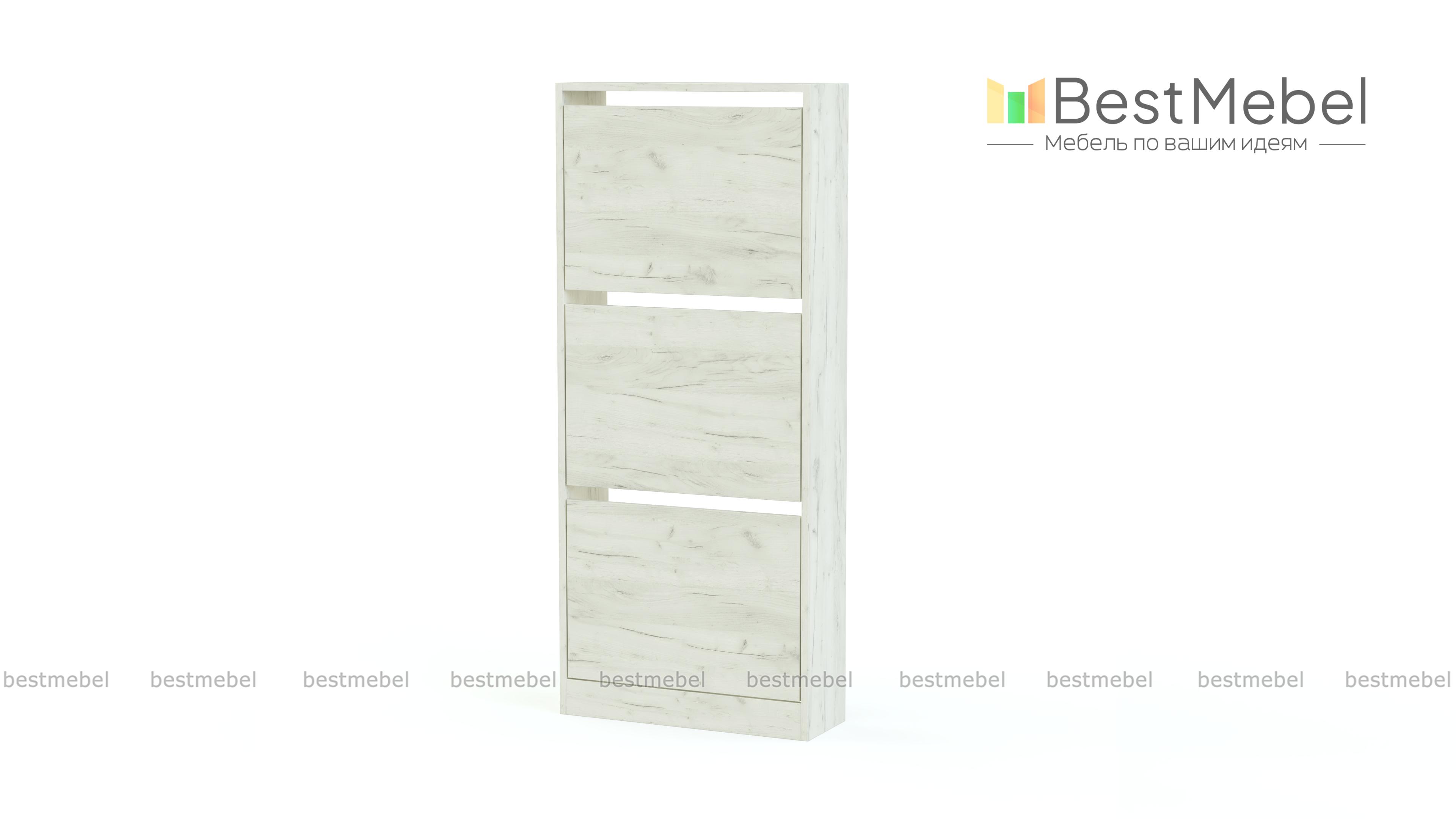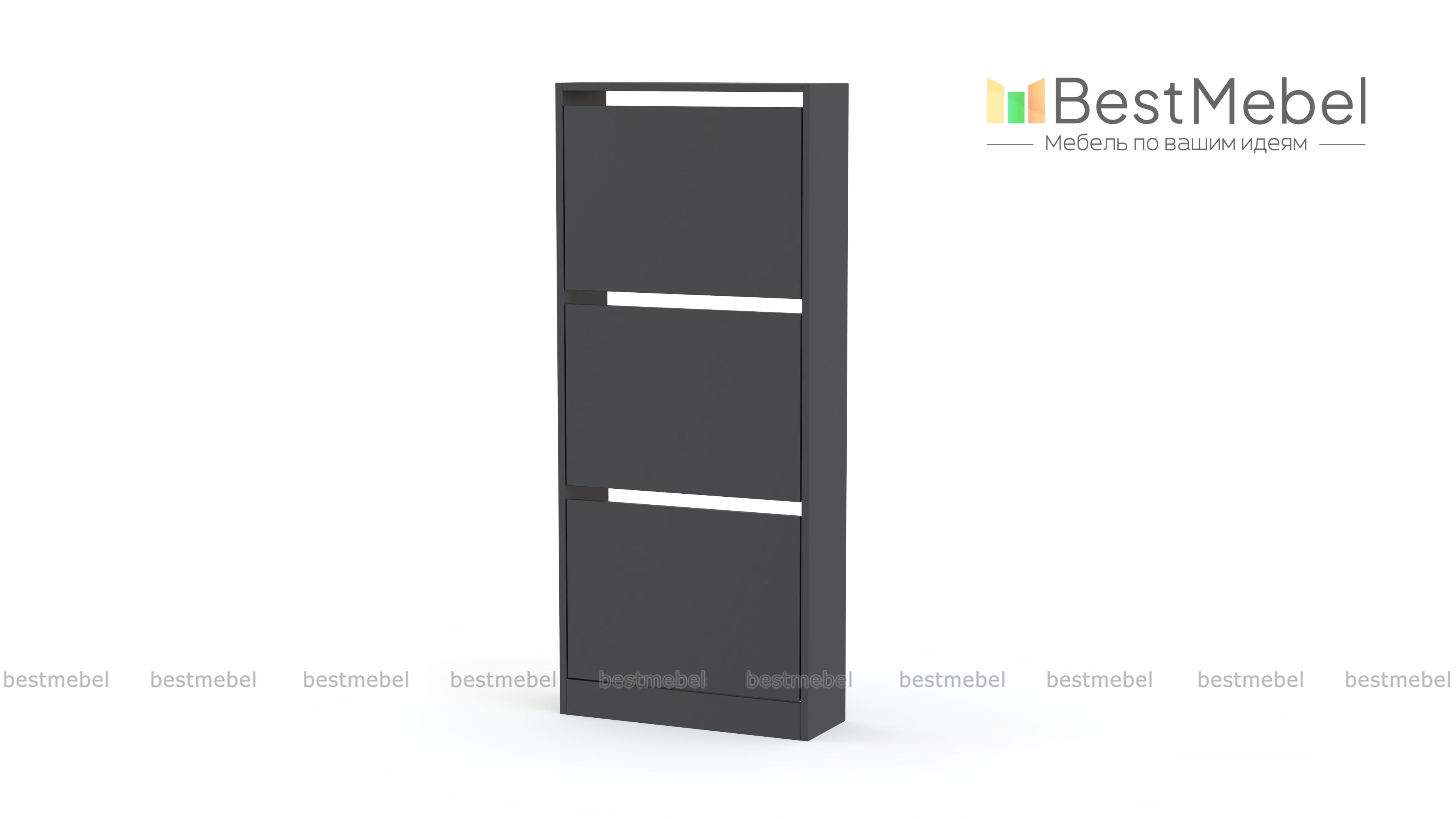 Обувница Анри 7 BMS занимает минимум места благодаря небольшой глубине. Узкая трехсекционная модель лаконичного дизайна гармонично вписывается в маленькие квартиры и студии, легко сочетаясь с другой мебелью. Для бережного хранения повседневной обуви конструкцией предусмотрены откидные лотки с одним отделением и глухими фасадами. Купить обувницу Анри 7 BMS, изготовленную по индивидуальным размерам, вы сможете недорого на сайте нашего интернет-магазина.