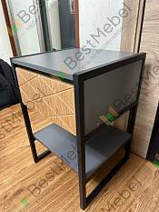 Тумба прикроватная Сара 3 BMS выполнена в стиле лофт, сочетая в оформлении ЛДСП теплых древесных тонов и металлический профиль. Лаконичная по форме модель оборудована выдвижным ящиком для хранения мелочей и открытой нижней полкой для книг и журналов. Материалы с отличными эксплуатационными свойствами станут гарантией долгого срока службы и эстетичного вида тумбы. Купить тумбу прикроватную Сара 3 BMS и сделать отдых комфортнее вам поможет наш интернет-магазин.