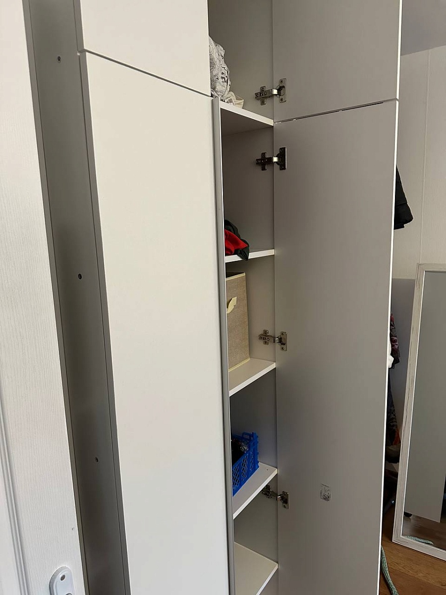 Хороший шкаф, размеры сами указали, как нам нужно было. На конец-то ящики вместительные есть! Много вещей влезло.Заказ 00000907557