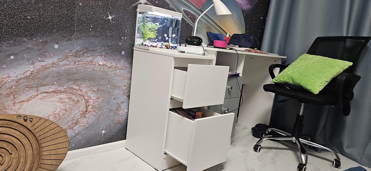 Заказ № 1242683. Приобрели одну тумбу. Так как ребёнку подарили аквариум. Всю мебель ранее заказывали в этом магазине. Идеально вписались в интерьер. Хорошее качество материала, доставка точно в срок! Однозначно рекомендую к покупке!