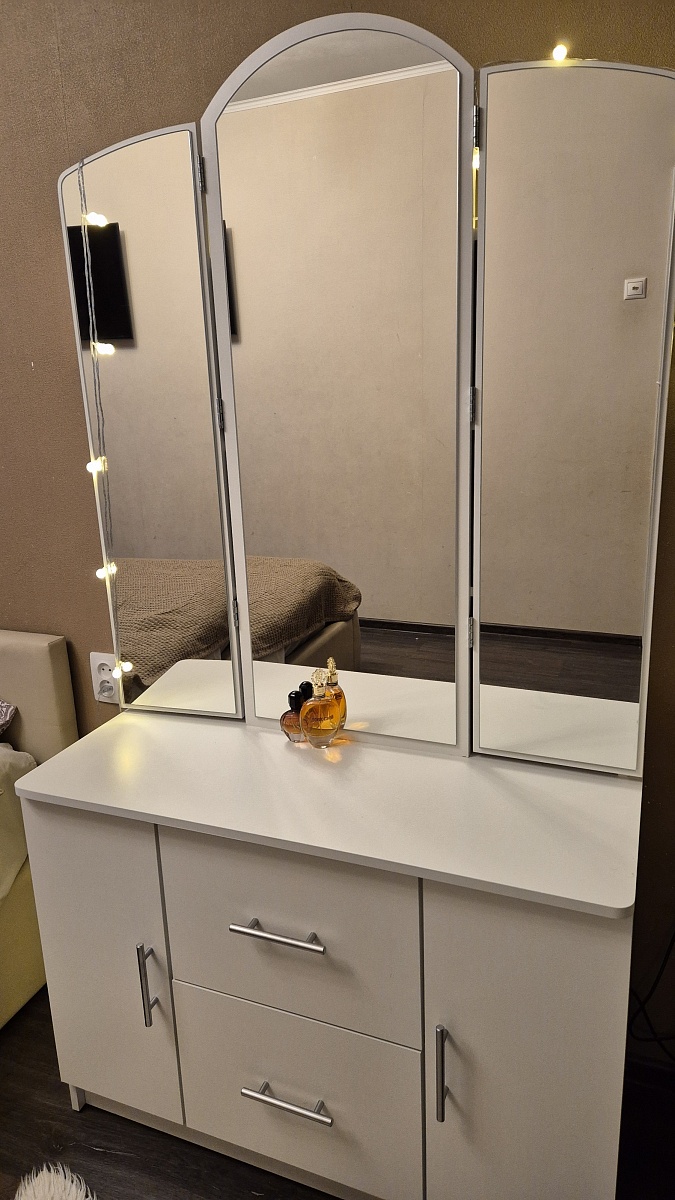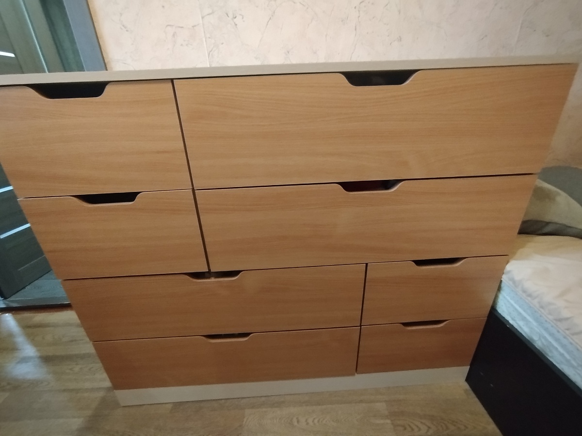 Заказ 00000867485. Приобретали комод. Нужен был длинный. Сайт очень удобный, можно выбрать и цвета и размеры. Понравилось, что есть возможность разного цвета корпуса и фасадов. Изготовили очень быстро, быстрее, чем по договорённости. Доставка вовремя. Качество хорошее, каждая деталь маркирована, легко собирается. Мы всем довольны, спасибо.