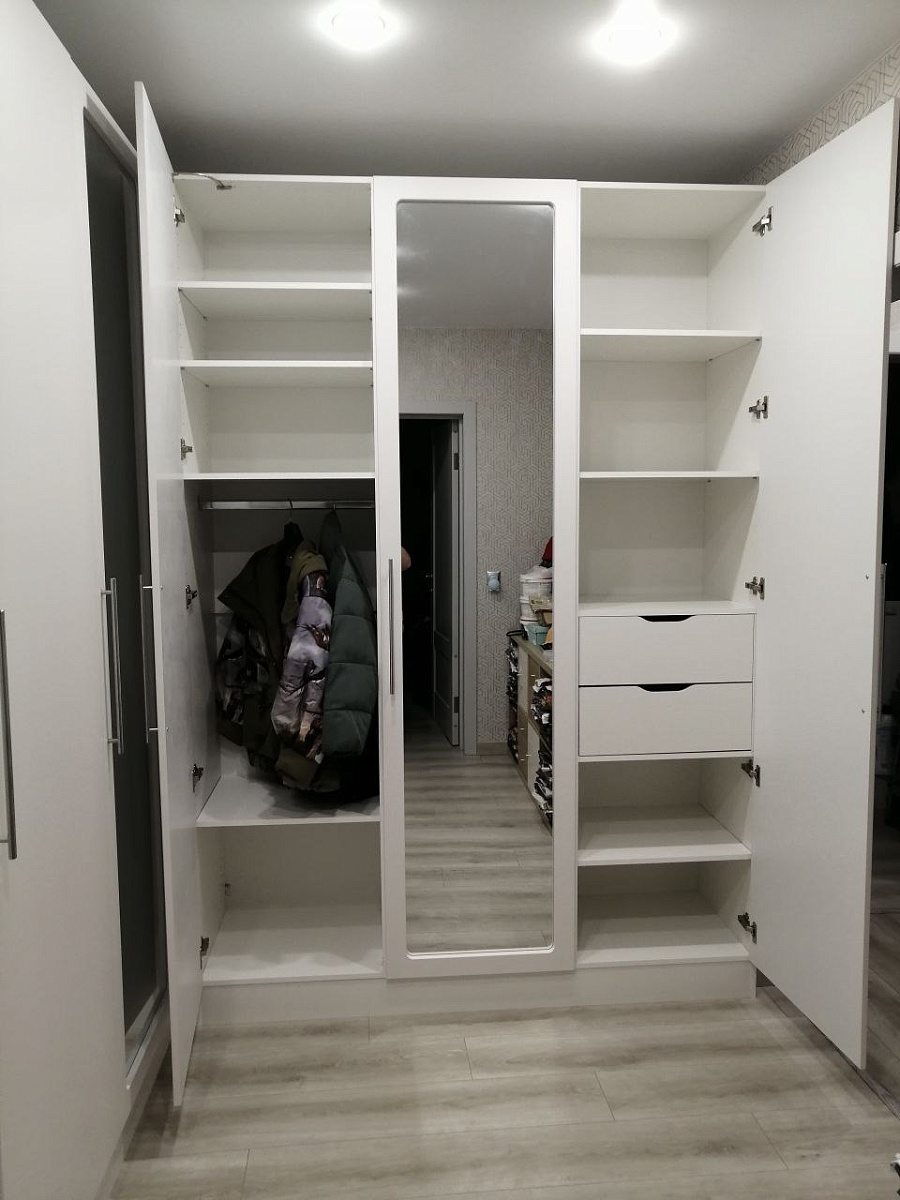 Собрали комод, который сами для себя придумали на основе имеющихся образцов с 9-ю выдвижными ящиками. Фасады с фрезеровкой выполнены и подогнаны очень хорошо. Рисунок был сложный, но все совпало и получилось очень красиво. Отдельное спасибо за нижнюю планку фасада на цоколь- получился единый рисунок и современный внешний вид. Есть замечания по глубине ящиков, т.к. в собранном виде ящики не доходят до задней стенке на 6 см. Как-то этот момент не согласовали. Думаю, сто можно было на 5 см точно увеличить глубину ящиков, что было бы функциональнее, т.к. комод это не только фасад, но и шкаф для вещей, постельного белья и Эти 5см я учитывала при выборе размера комода. Если проблема в фурнитуре, то можно было это обсудить. А так, нам теперь с этим жить. Ещё сборка тоже в некоторых местах не продумана ( центральные внутренние отверстия под симметричные направляющие почему-то одно сквозное. Получается, что направляющие с одной стороны прикрутили, а потом с другой стороны центральной стойки в те же отверстия нужно прикручивать с другой стороны направляющие. Шурупы ломаются друг о друга и конструкция кривая. Пришлось подгонять самим. Не хватило 2-х больших шурупов для сборки корпуса. Думаю, что лучше больше класть, чем меньше. Это уже 2-й наш большой заказ. В любом случае большое спасибо, что Вы воплощает наши мечты! Отдельное огромное спасибо инженеру-конструктору и мастеру по внешнему виду фрезеровки. Получилось ОГОНЬ!