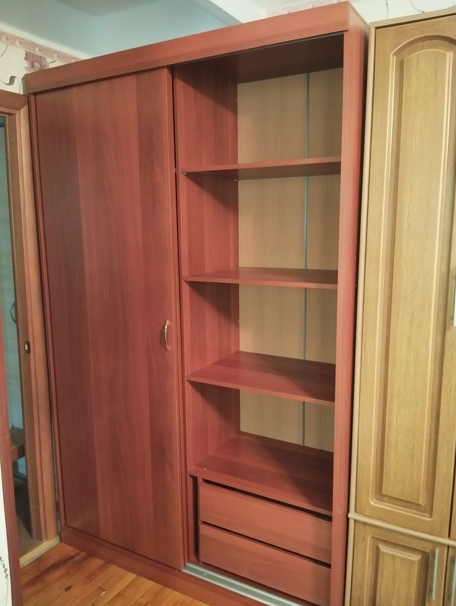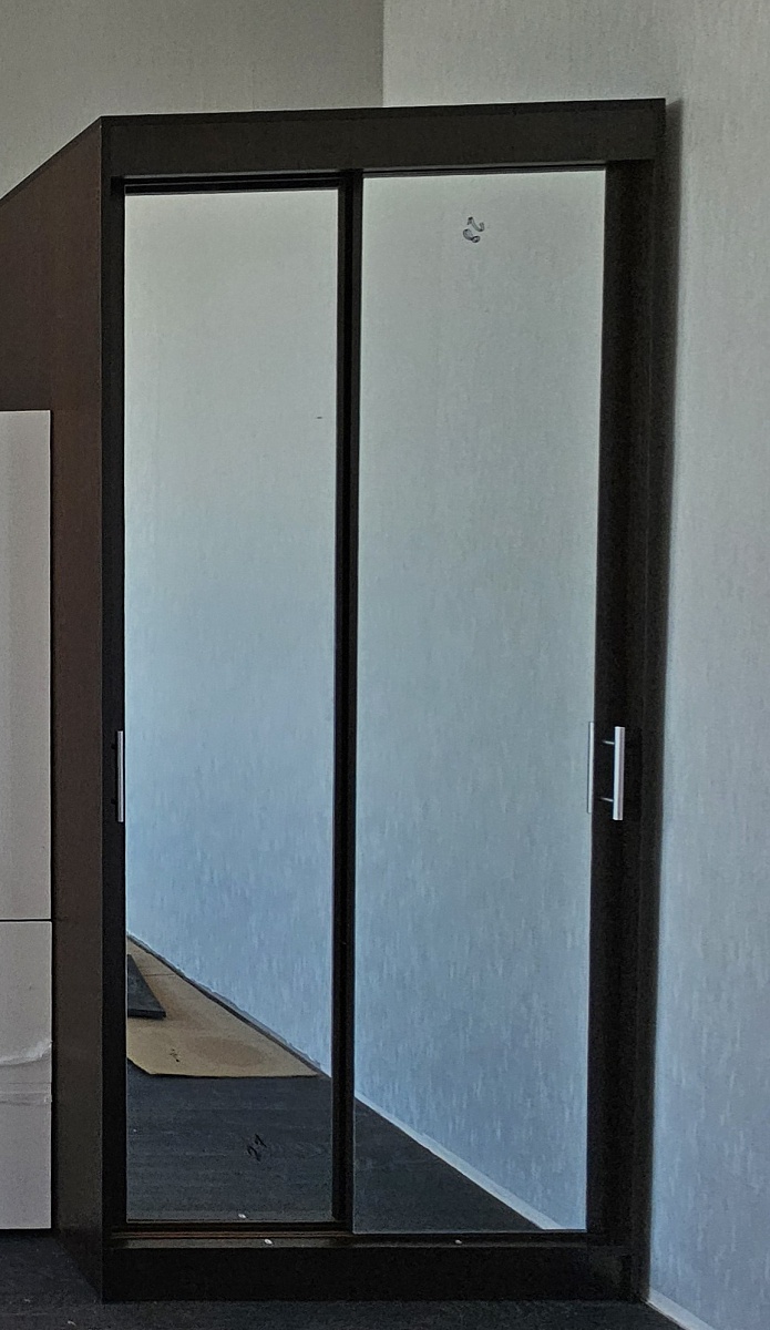 Шкаф брали в цвете венге, в дополнение к стенке Фьюжн. Немного увеличили размеры, чтобы сделать его более местительным. Заказали 2 зеркала на обе двери. Жалею, что не заказала ещё большего размера, потому что шкаф отличный, но вот размер лично под мои нужды маловат. Заказ 766510.