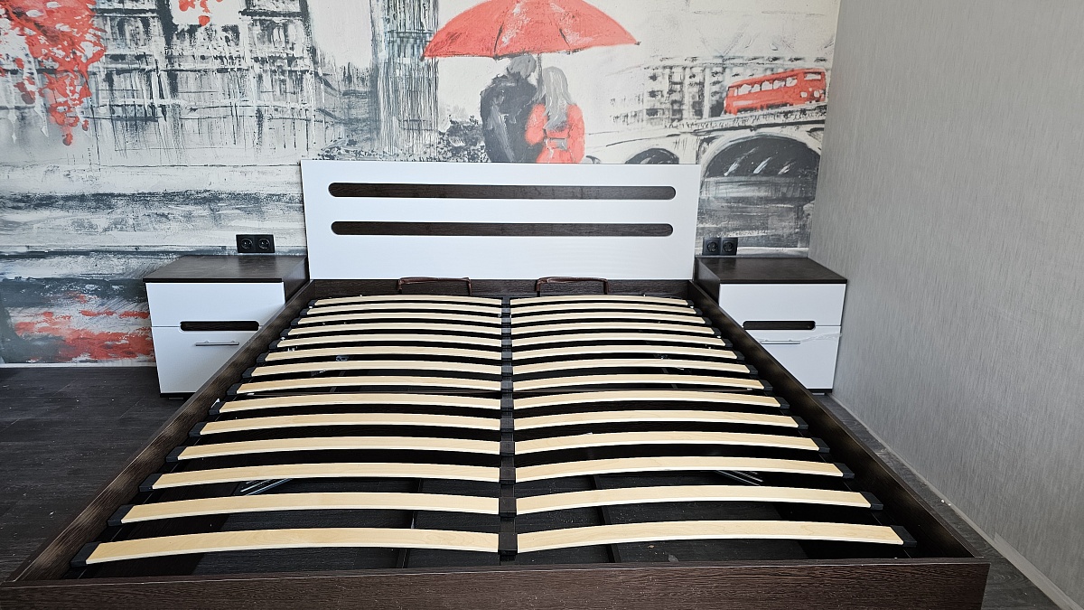 Кровать брали в паре с прикроватными тумбами из этой же серии, размер кровати 200*160. Дополнительно заказывали подъемный механизм. Заказ 766510.