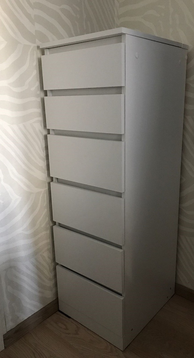 Заказ 00000788555. Отличный комод, оптимальное соотношение «цена-качество», привлекательный минималистичный дизайн. Занимает мало места, но при этом вместительный. Доставили вовремя. Единственный недостаток-непонятная инструкция по сборке. Самостоятельно собирать не решились, заказали сборку, хотя точно такой же комод из Икеа легко собрали сами.