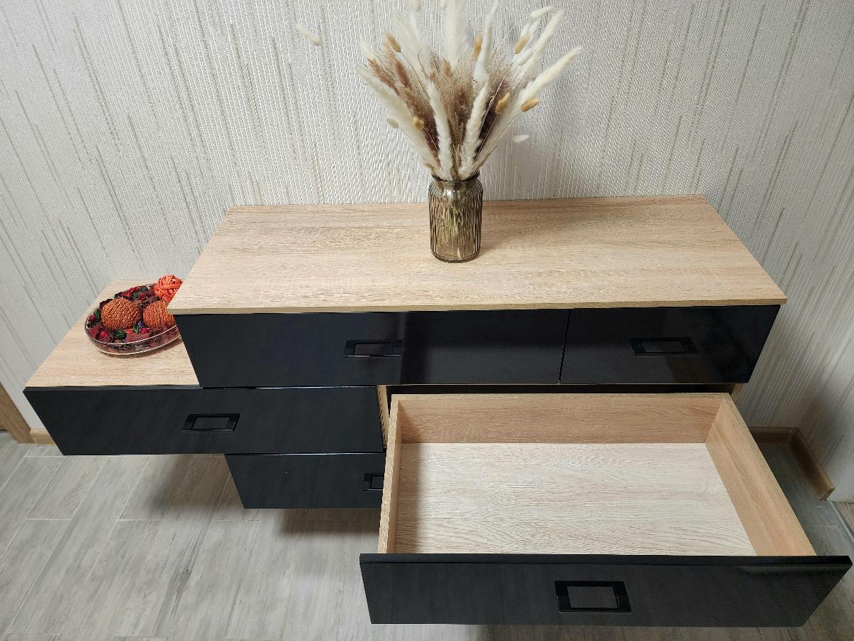Вообще классный шкаф, все понравилось, вписался в интерьер очень стильный дизайн, хорошее качество, конфигуратор на сайте безусловный плюс! Сразу по пунктам!Плюсы:Классный конструктор на сайте под который все могут изготовить на любой вкус.Разметки и отверстия засверлены отлично без перекосов все ровненько.Комплект фурнитуры с запасом, хотелось бы вместе кучи саморезов запасные эксцентрики, они в целом слабенького качества. Наклейки на конформаты чтоб не видно было отверстий с запасом, заглушек с запасом.Задняя стенка из ДСП а не картонка как обычно бывает отлично.Качество фасада отличное, покрашено с бархатистым эффектом на ощупь.На каждом элементе ДСП наклейка тоже удобно, но без инструкции бесполезны.Минусы:Распил местами не в размер попался зазор в миллиметр еле зажал его. В целом ДСП распилен на 7-8 балов. Есть опыт сборки.Инструкция ужасная, один листик со схемой. Если бы не опыт в сборке думаю заказывал бы сборку.Эксцентрики хлюпкенькие нужно класть про запас, 2 сломалось и 1 не хватило.Консультант сказал что фасад будет с обеих сторон при уточнении по итогу приехало как на фото только на одну сторону. В моем случае не критично подошло. Но в целом момент важный.