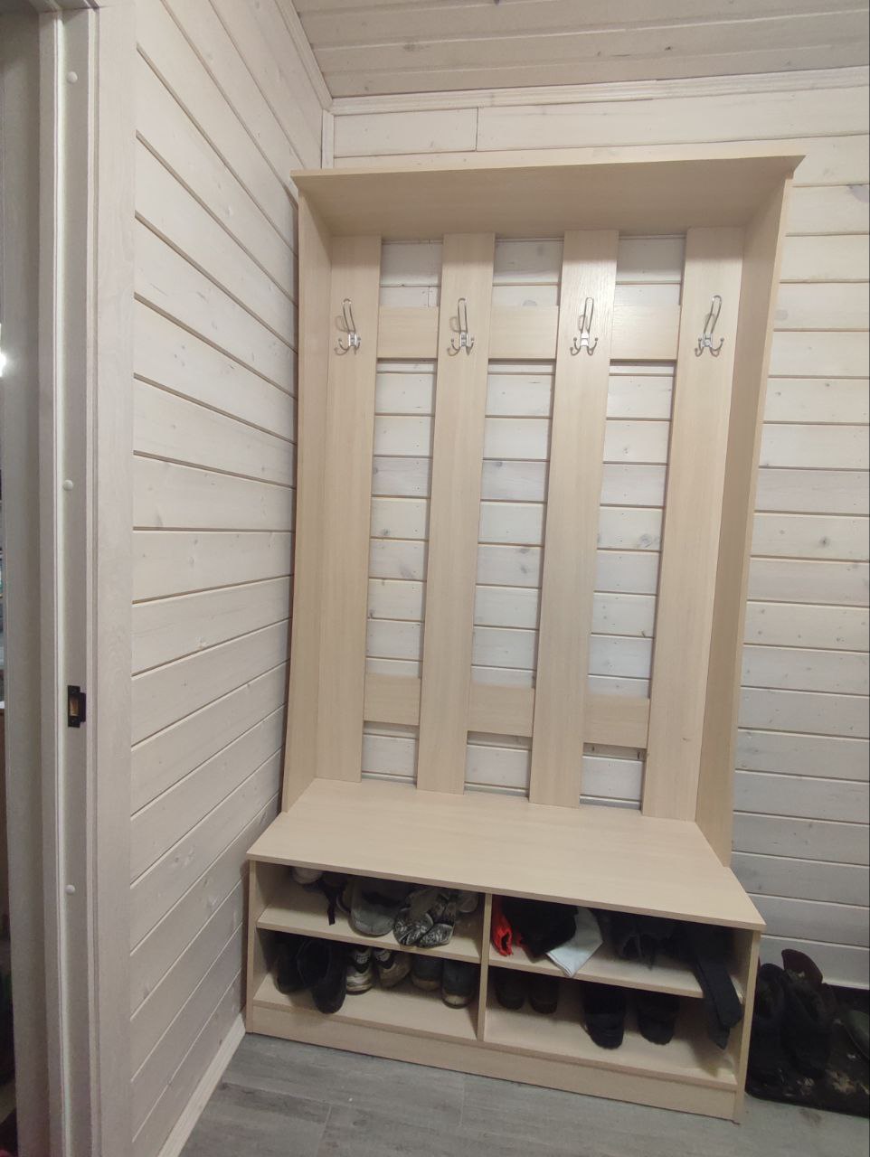 Заказ 00000550672, изделие Прихожая Лора BMS (1200х2200х450)Плюсы:-возможно выбирать размеры, цвета, комплектацию, допы. Онлайн калькулятор.-доставка-качествоПеред заказом лучше заранее измерить помещение и свой рост ) я этого не сделал и заказал самый большой по размерам, поэтому еле дотягиваюсь до крючков)