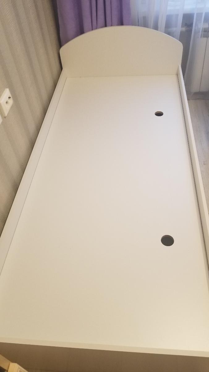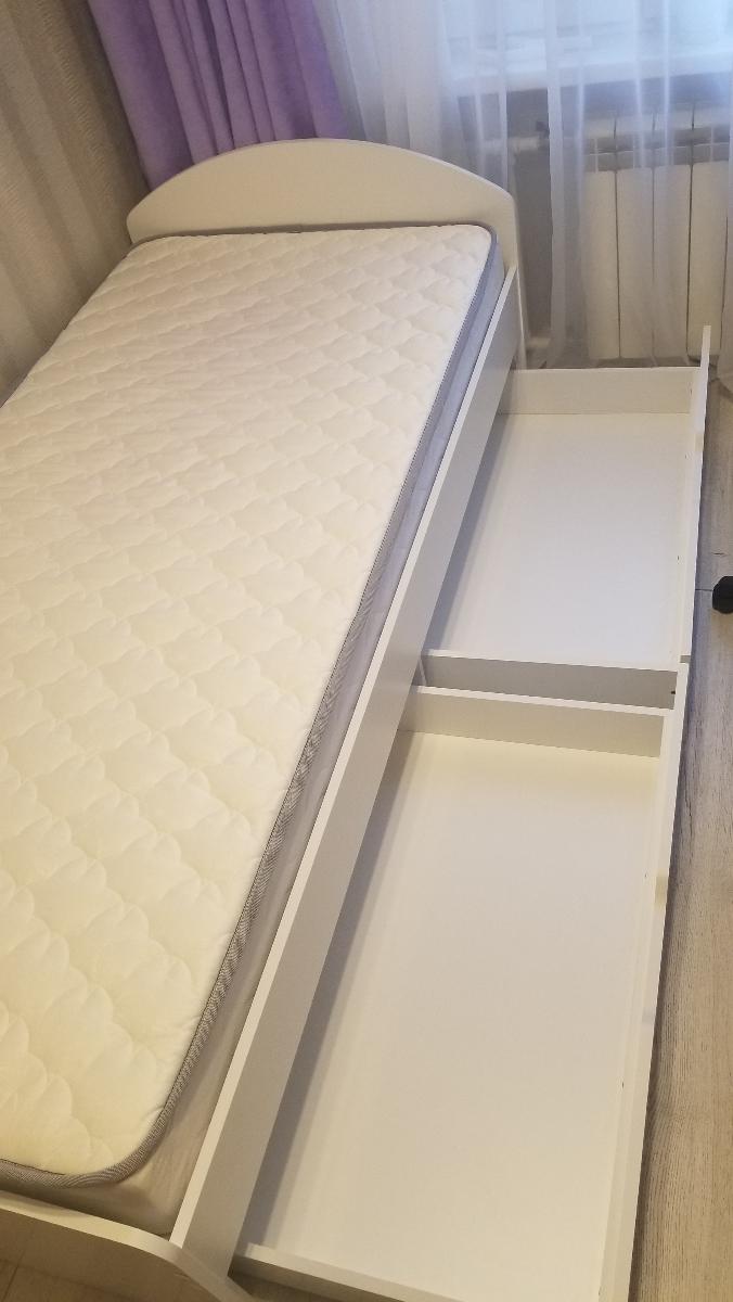 Прекрасная кровать за такие деньги! В белом цвете делали 2 недели. Доставили ровно в срок. Материал гладкий, приятный на ощупь, легко моется. Нет острых углов, сплошное основание, большие вместительные ящики. Колесики на ящиках не только снизу, но и сбоку, благодаря чему ровно выдвигаются. Единственный недочет для меня - тонкая кромка. В другой раз наверно закажу кромку потолще. Заказ №902144.