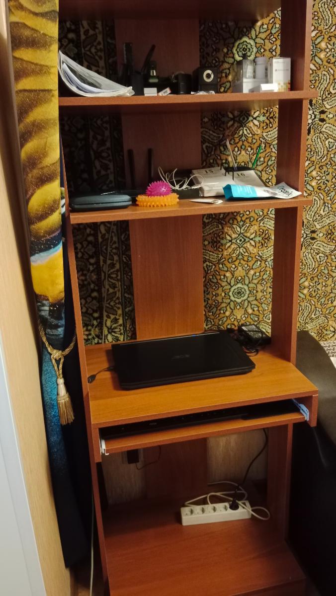 Заказ 00000514343. компьютерный стол. доставка осуществлена вовремя. все вопросы по доставке и прочим вопросам решаются с оператором. за час до прибытия курьерская служба предупреждает о своем  прибытии.  прекрасный стол за небольшую цену. удобен для работы с ноутом или компом. хорошо продумано полка для клавиатуры. достаточное количество полок для других мелочей. небольшие габариты при хорошей вместимости. как недостаток хочется отметить не очень подробную инструкцию по сборке.